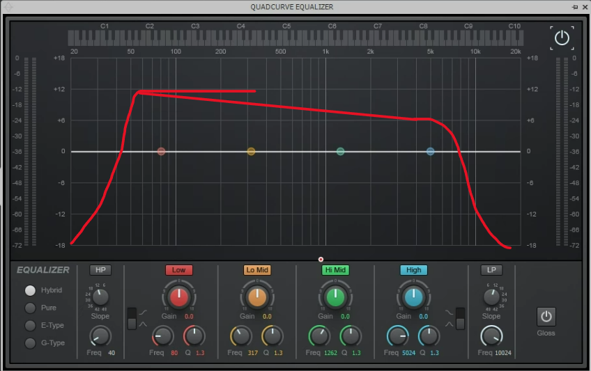 - 게인 컨트롤러 : 선택한 주파수 대역을 증폭/ 감쇄 (Boost/Attenuation)