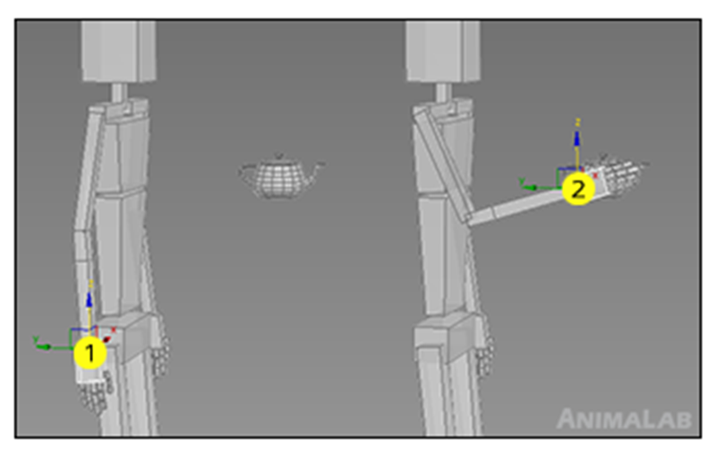 계단에 자연스럽게 서있을 수 있게 하거나, 특정 물체에 정확하게 손을 뻗게 하는 IK