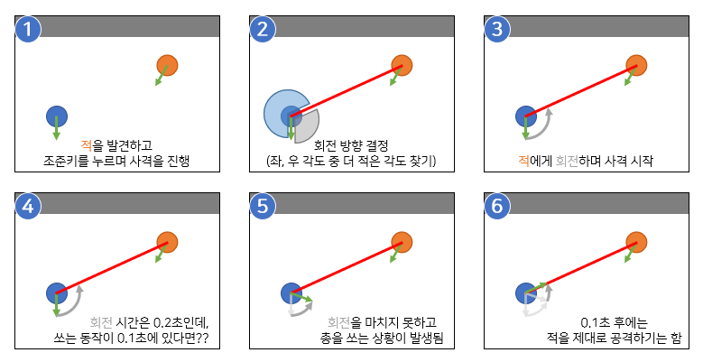 ※ 애니메이션 로테이션을 매우 빠르게 처리하고 난 후, 사격 애니메이션을 재생하는 것도 하나의 방법이다.