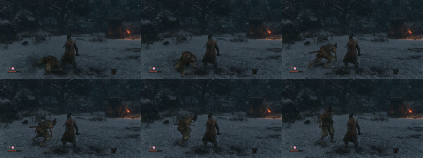 ※ 캐릭터 중점 기준으로 로테이션 처리 중인 세키로 (발이 미끌리는 것은 감안하고 있는 모습)