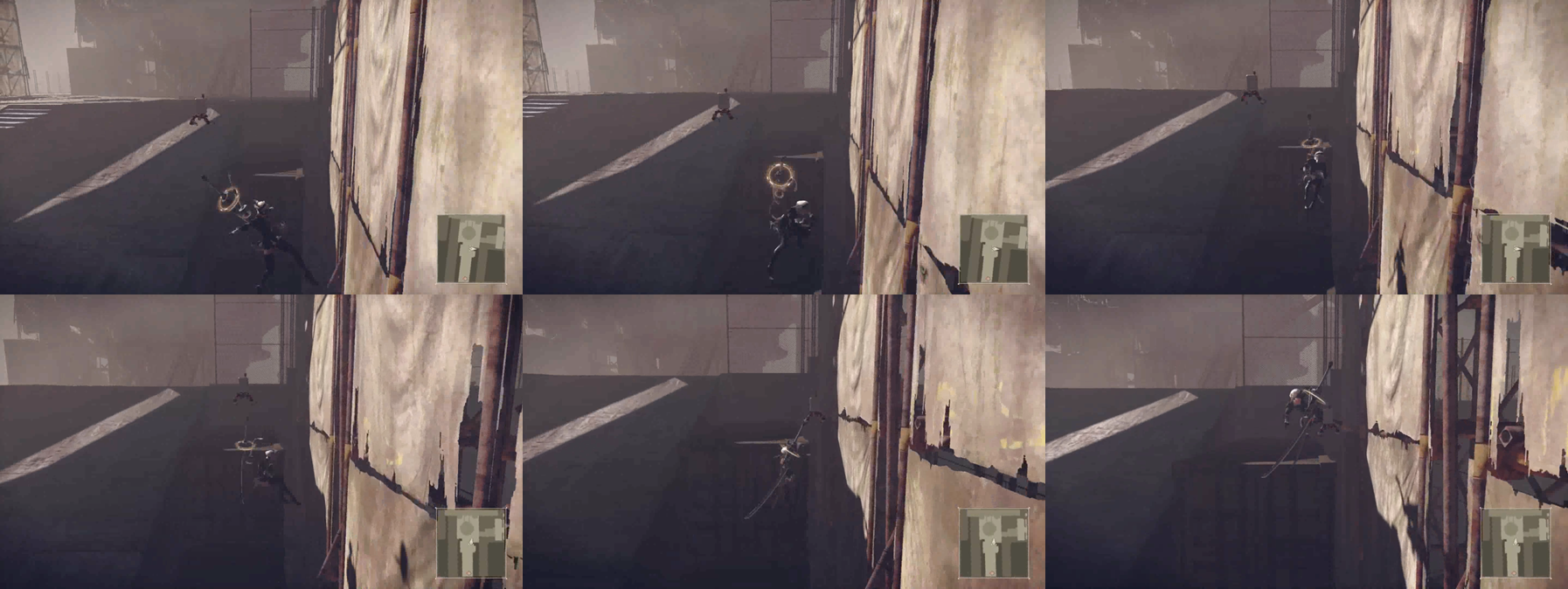 빠르게 로테이션 처리하며 애니메이션을 정면 기준으로 처리하는 니어오토마타의 벽잡기