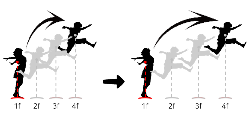 - 점프를 위한 전조 동작과 점프하며 정점으로 올라가는 동작