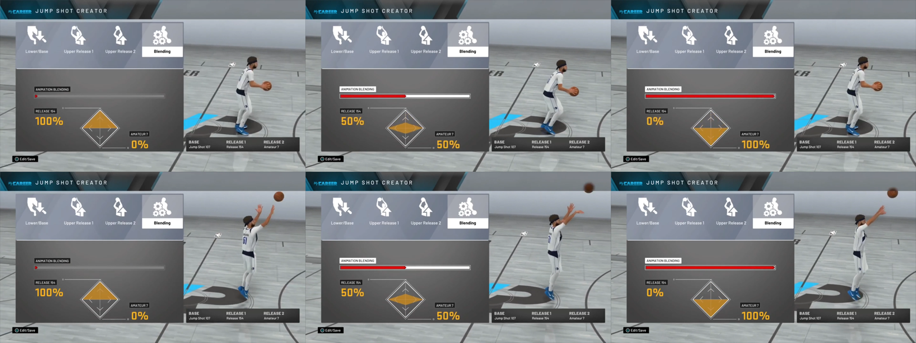 스포츠 게임의 경우 , 정교한 공잡기를 위해 3개의 애니메이션을 섞어서 사용하기도 한다.