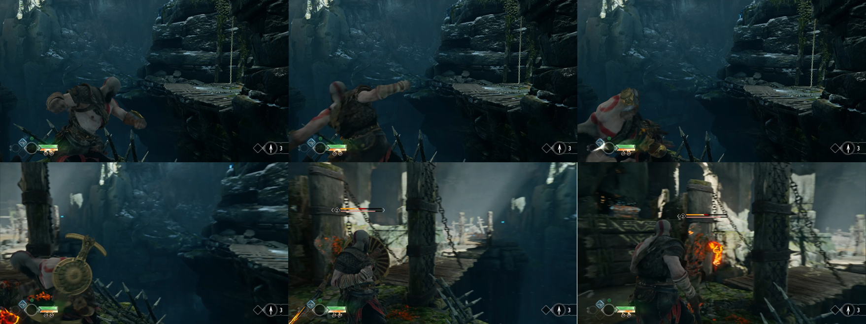 ※ 적의 타격지점 기준으로 자동 로테이션 처리 중인 갓오브워 (세키로에 비해 전투 타겟팅이 훨씬 쉽다.)