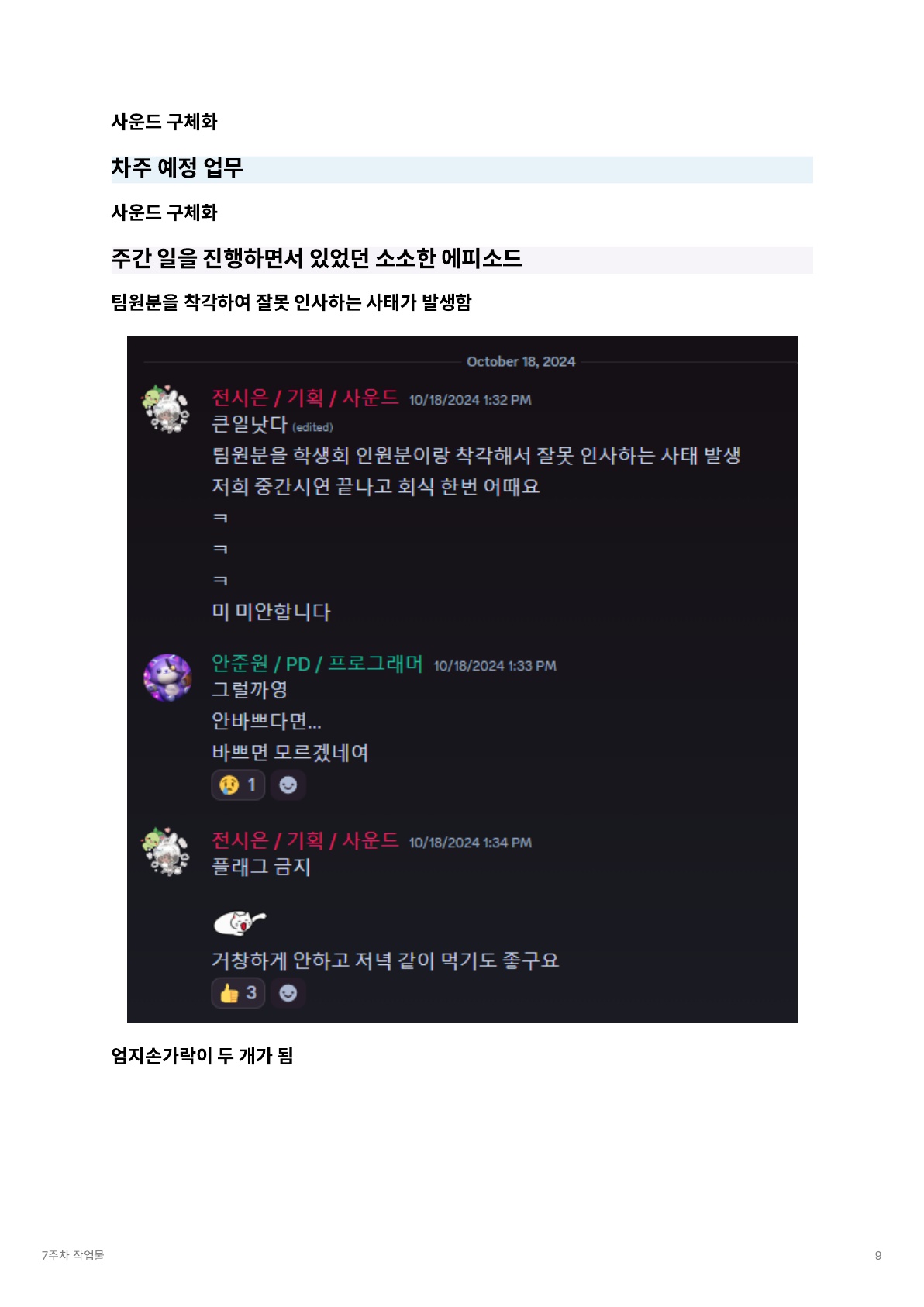 | [졸업작품 프로젝트] 취·창·프 9주차 - 팀 주간 일지, 개인 일지 (0) | 2024.11.06 |