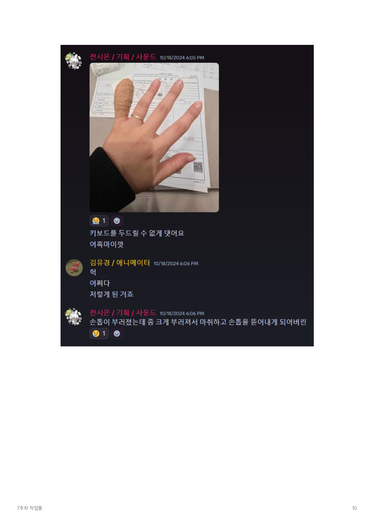 | [졸업작품 프로젝트] 취·창·프 6주차 - 팀 주간 일지, 개인 일지 (0) | 2024.10.19 |