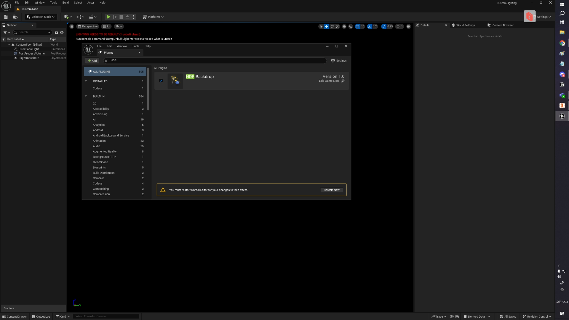 Edit > Plugin > HDRBackdrop 추가 후 재시작