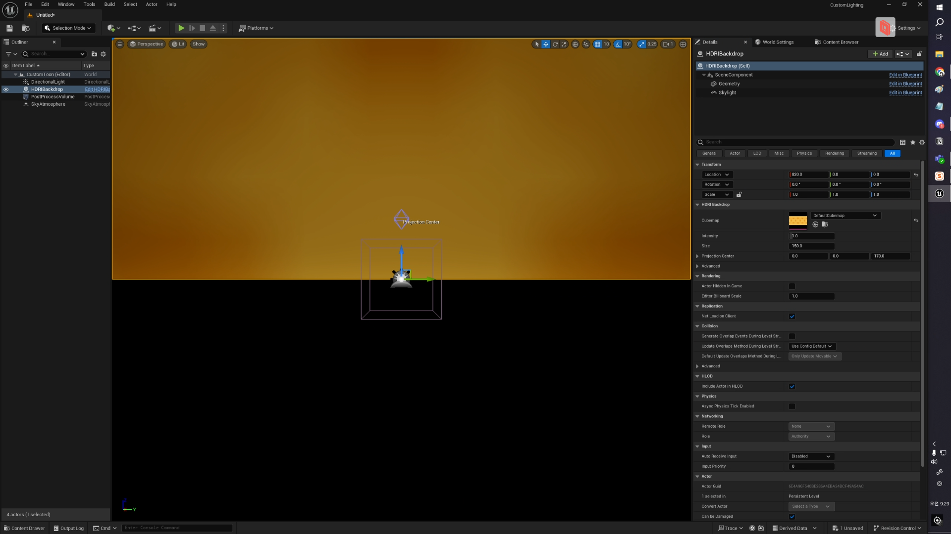 톱니바퀴 > Show Engine Contentes, Show Plugin Contents를 선택해준 후 DefaultCubeMap으로 세팅한다.