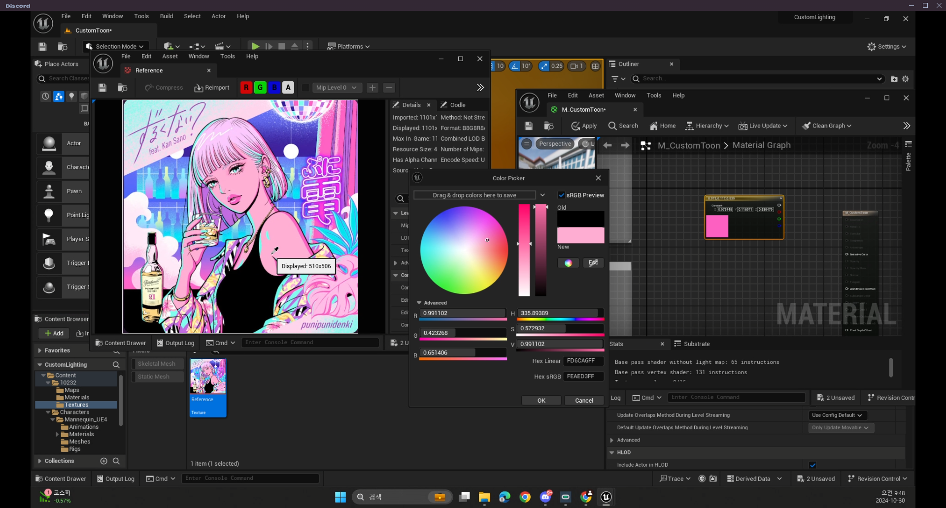 언릿을 하지 않으면 언리얼 기본 라이팅이 들어오면서 원하는 색상이 만들어지지 않음.