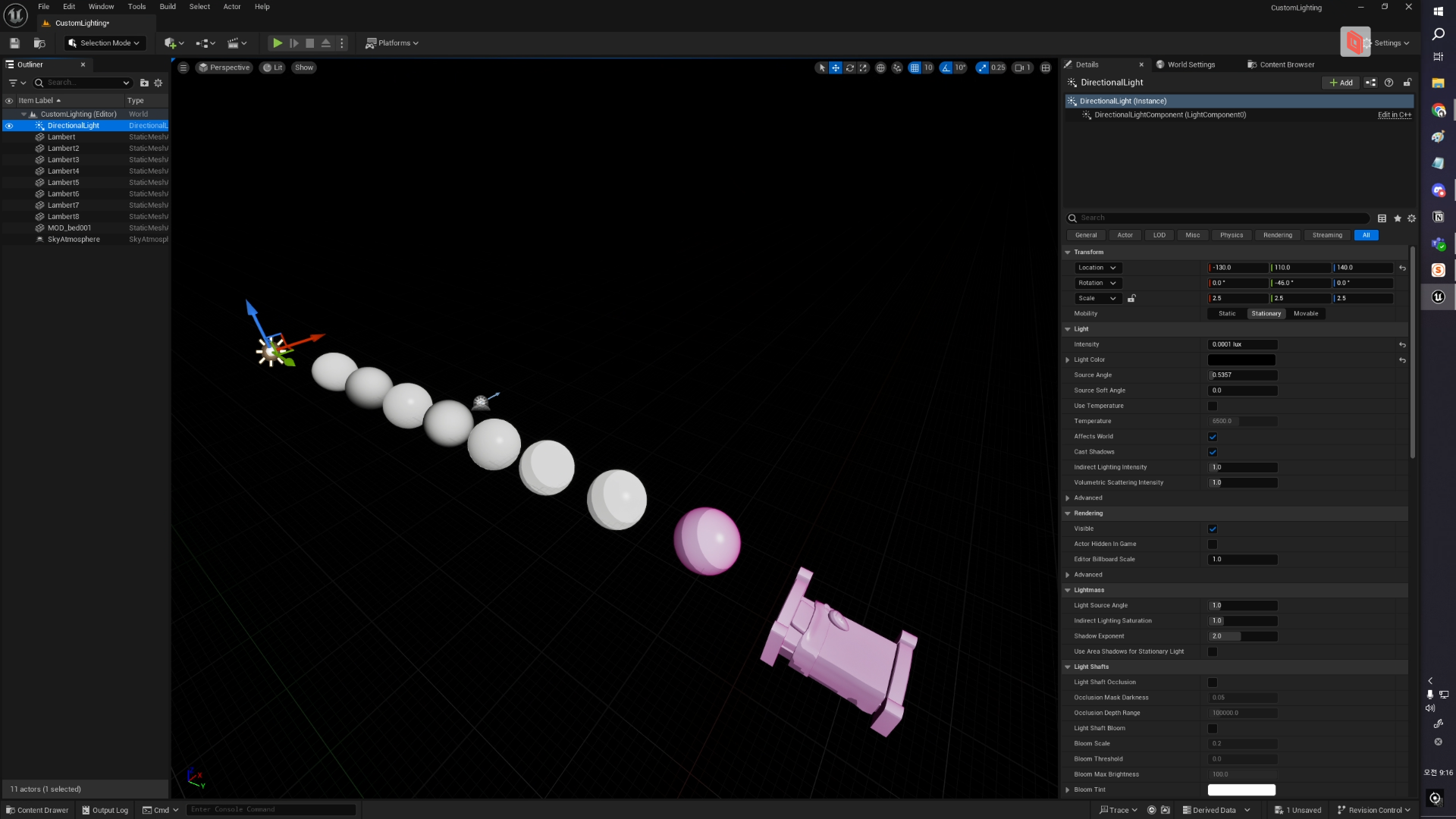 Add > RotatingMovement를 추가하여 자동으로 DirectionalLight가 돌아가게 만들 수 있다.