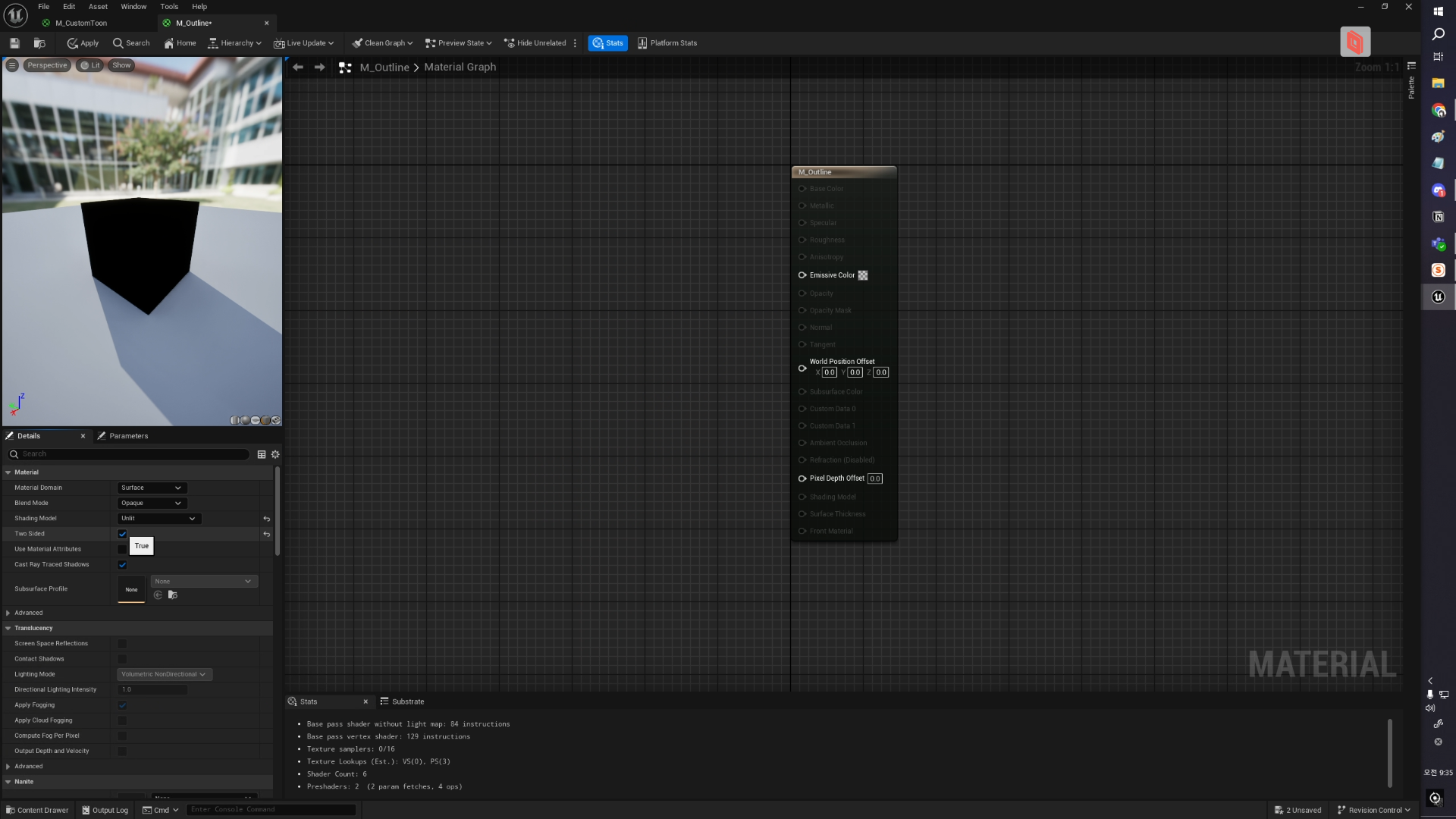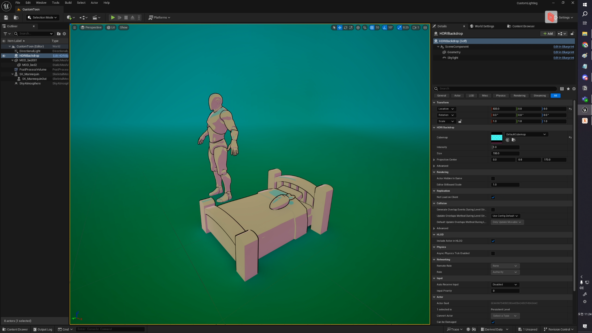 언릿을 하지 않으면 언리얼 기본 라이팅이 들어오면서 원하는 색상이 만들어지지 않음.
