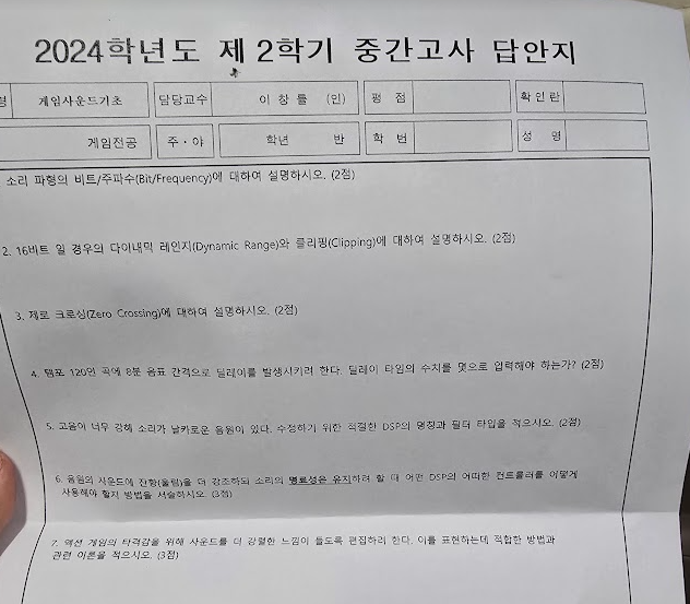 | 게임사운드기초 8주차 - 사운드 디자인과 기초 음향학 (1) | 2024.10.24 |