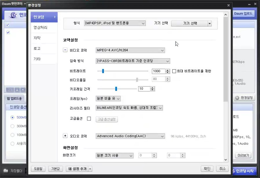 동영상은 시각 정보의 비중이 크다. 관련 옵션이 굉장히 많다.
