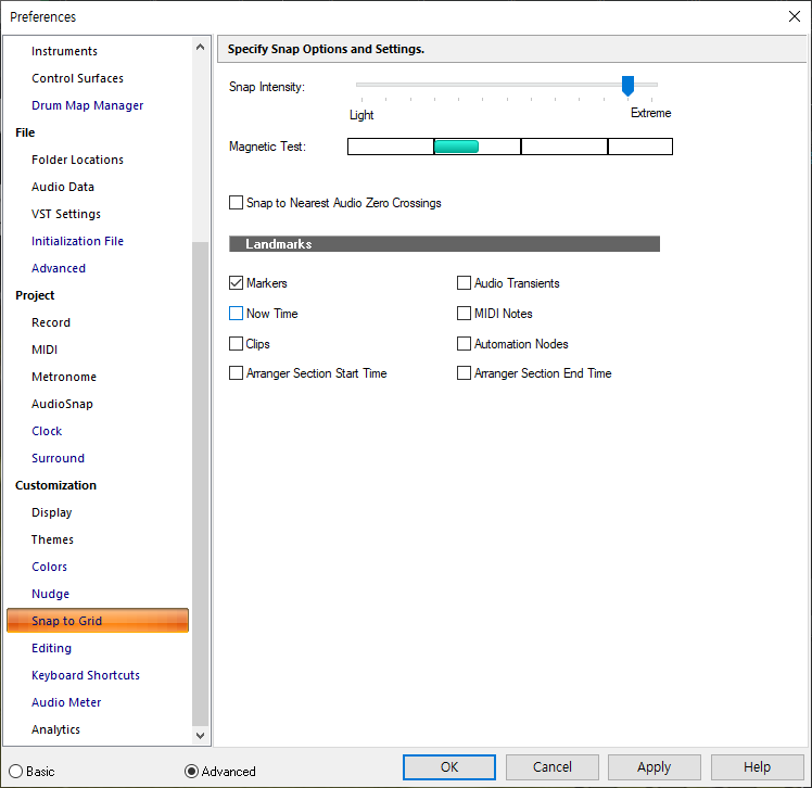 마커에 자동 스냅 되도록 Snap 기능을 사용할 수 있다.