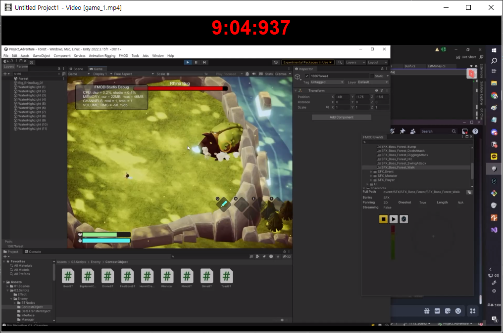 게임에 있던 효과음 일부를 사용하는 것은 안 된다. DSP를 활용하여 어울리도록 구성할 것.