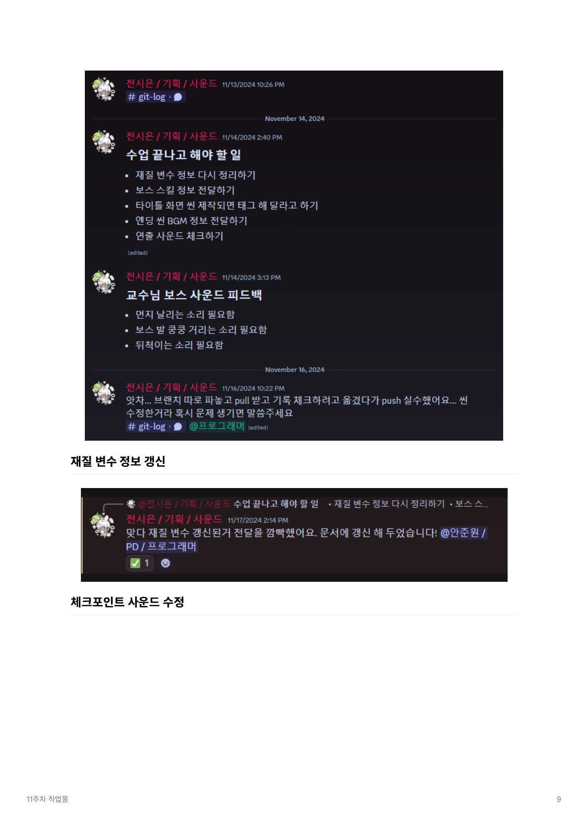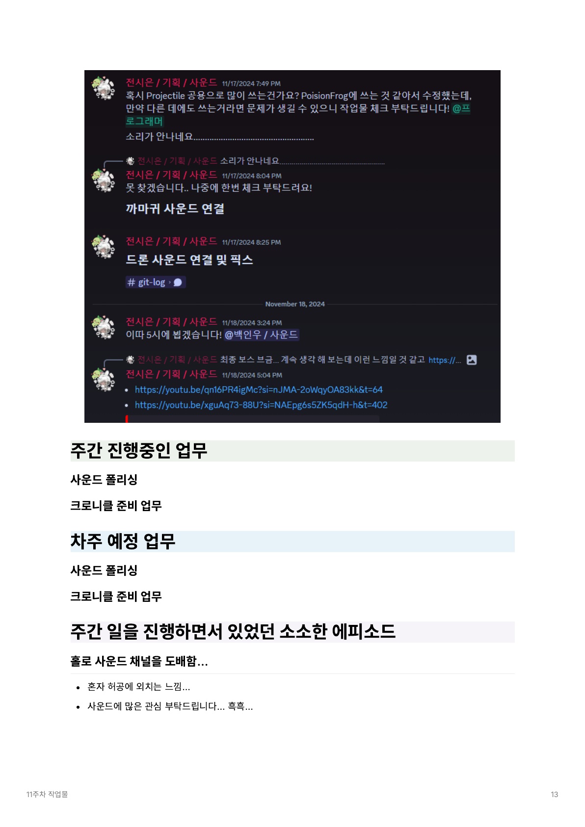 | [졸업작품 프로젝트] 취·창·프 9주차 - 팀 주간 일지, 개인 일지 (0) | 2024.11.06 |