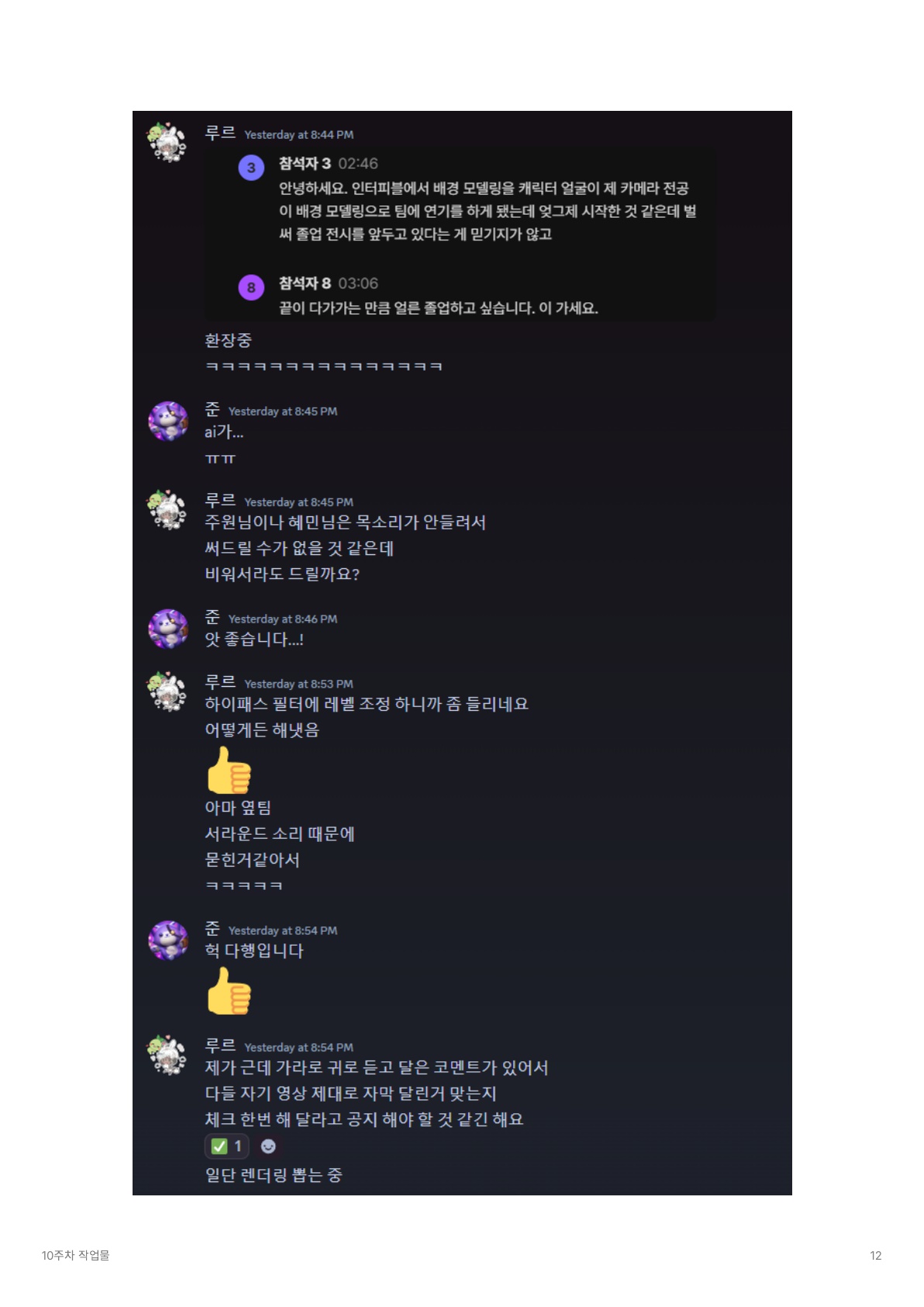 | [졸업작품 프로젝트] 취·창·프 8주차 - 발표 & 중간 시연, 팀 주간 일지, 개인 일지 (0) | 2024.10.29 |
