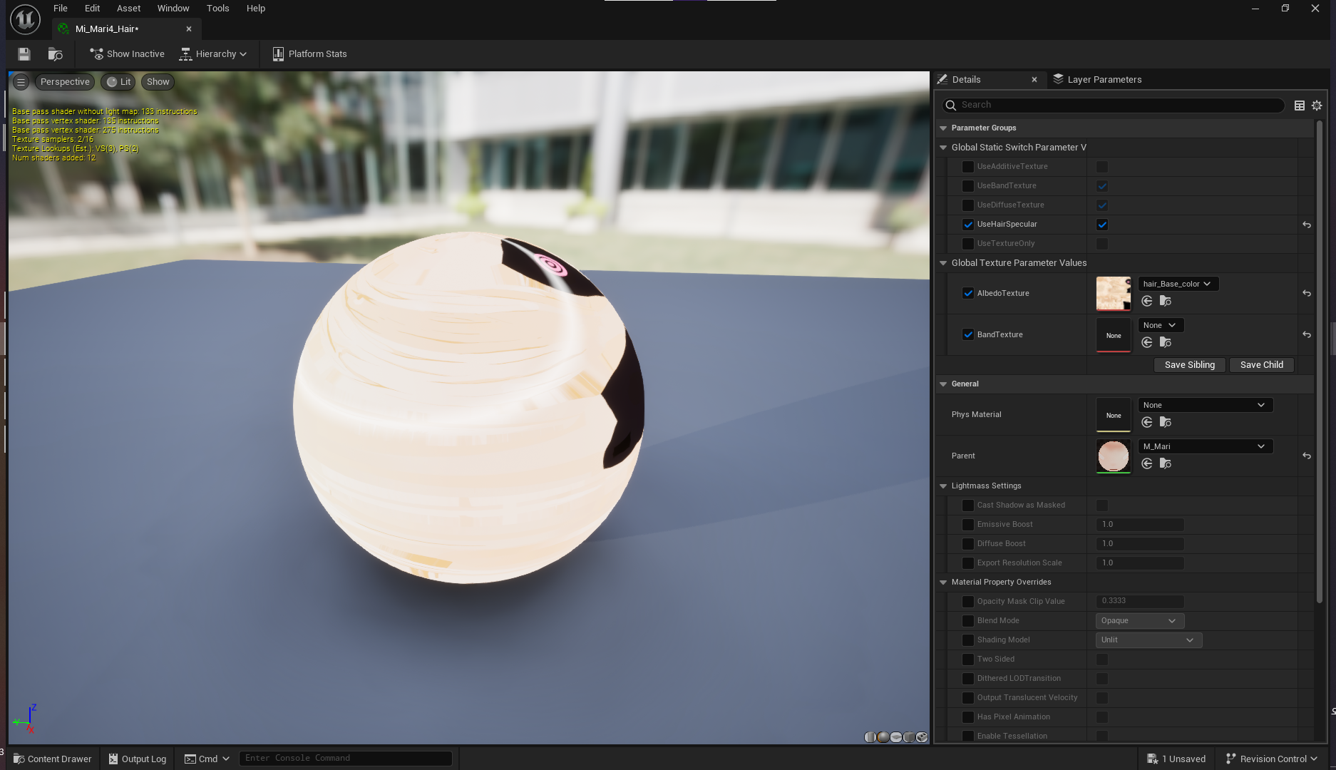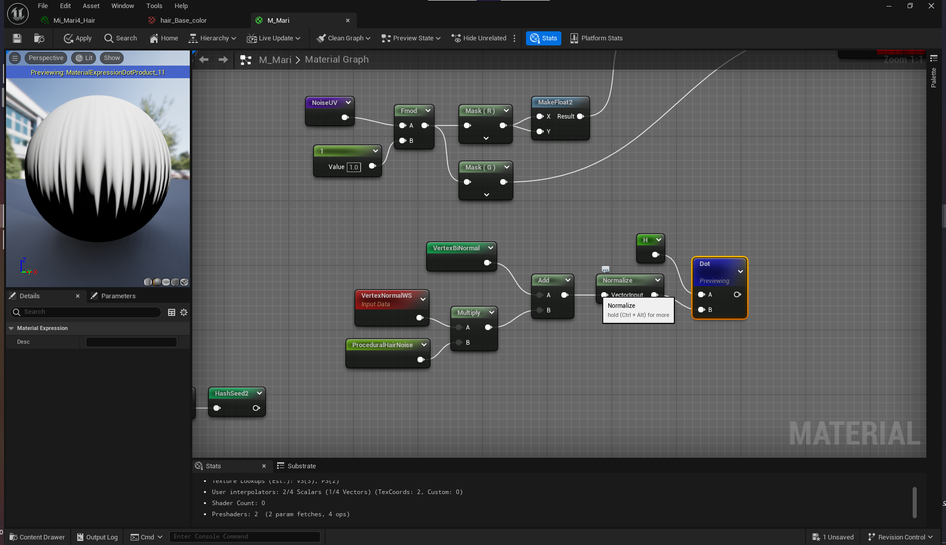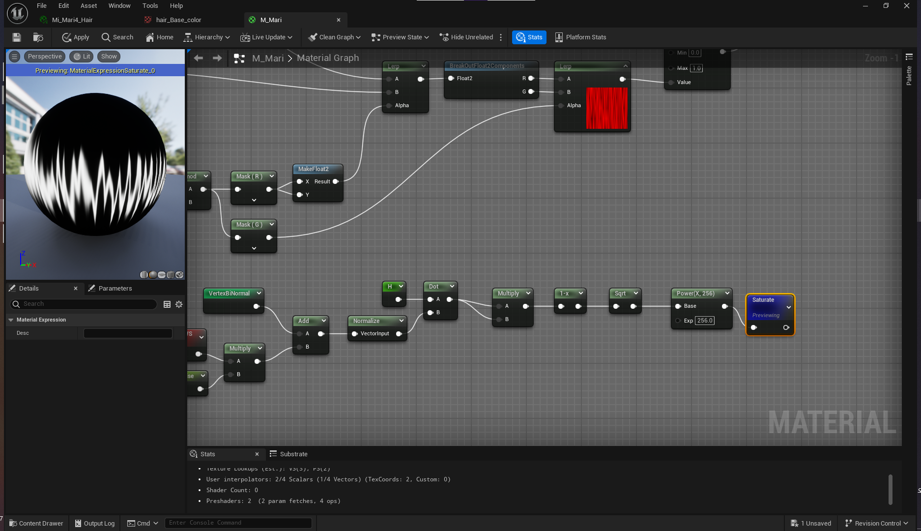 제작된 결과물은 Kajiya Kay hair specular 공식을 반영한 것이다.