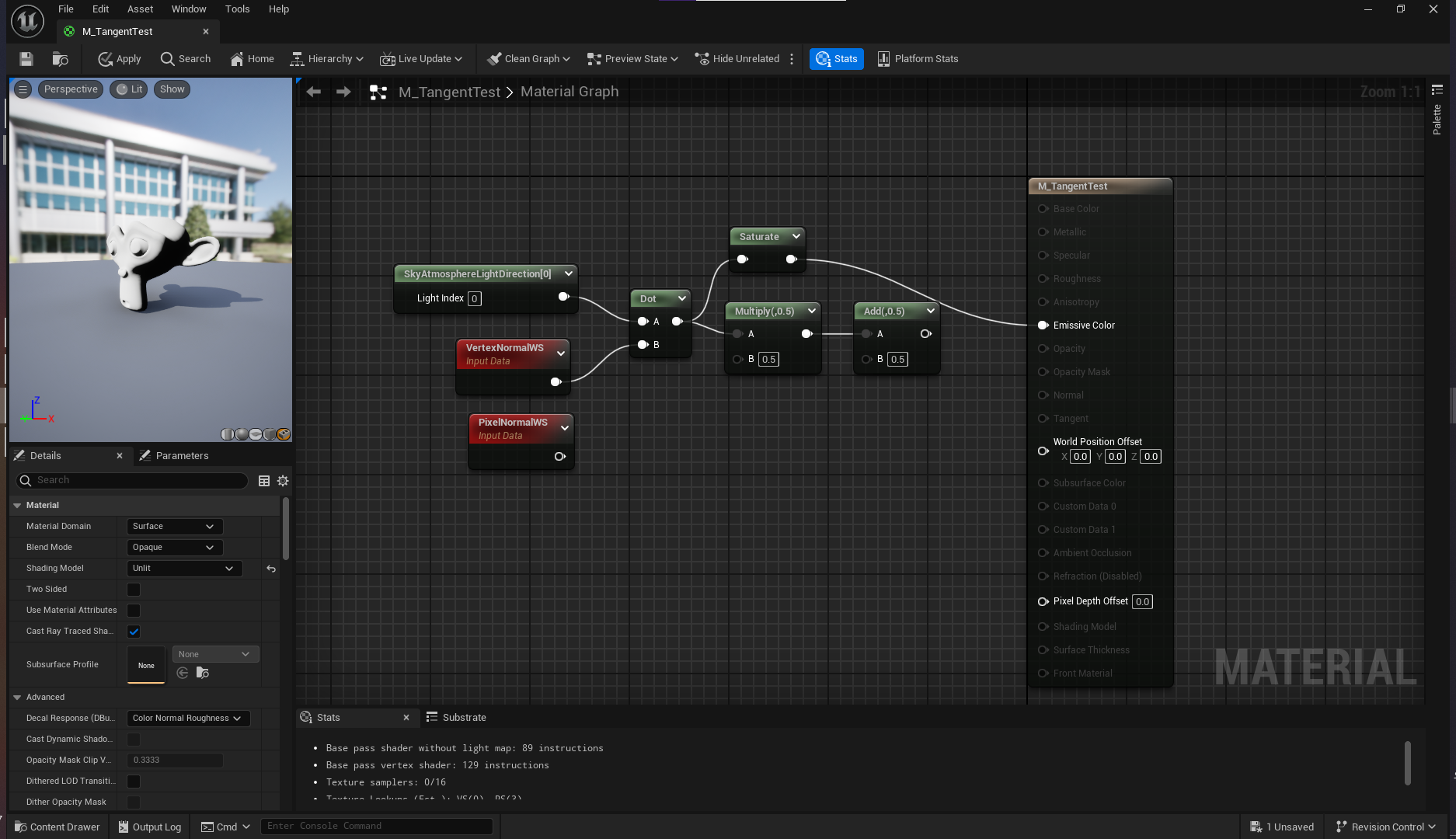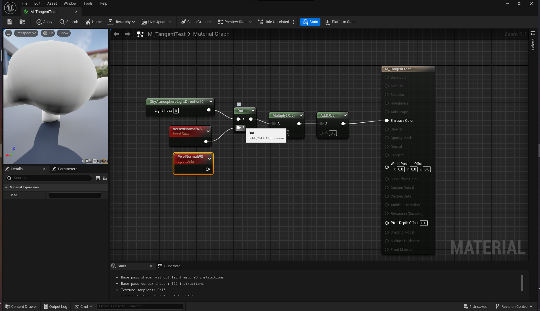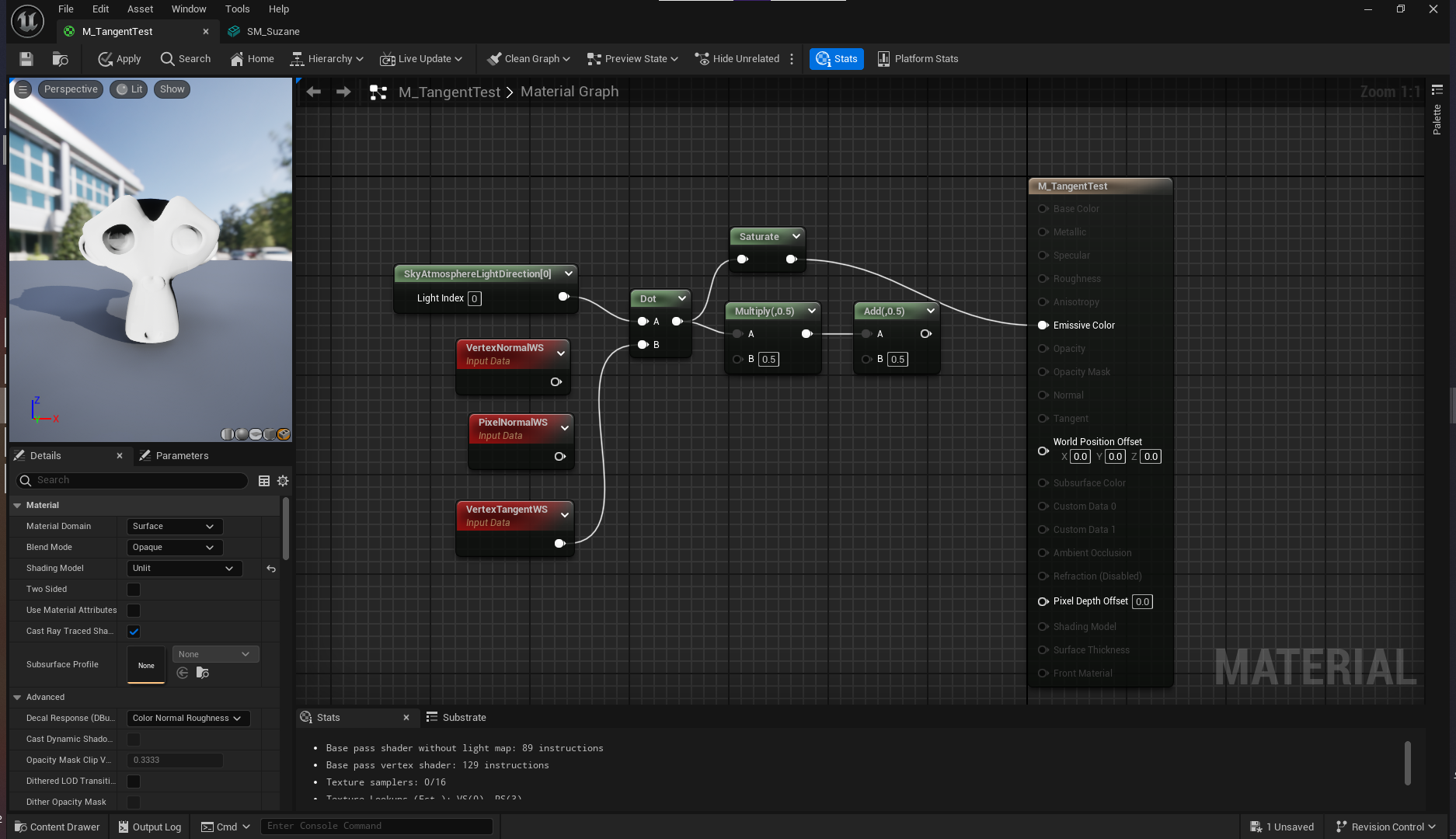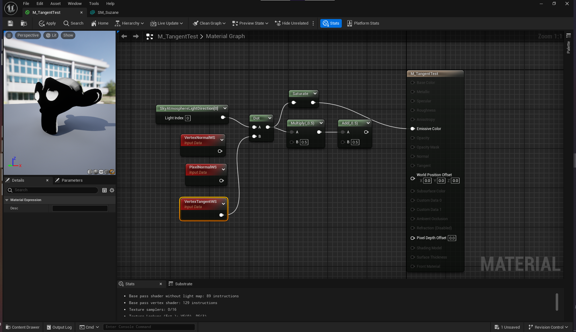 탄젠트 정보를 빼게 되면 (Vertex Tangent WS 사용) 빛에 무관하게 라이팅이 왼쪽에서 오른쪽으로 지게 된다.