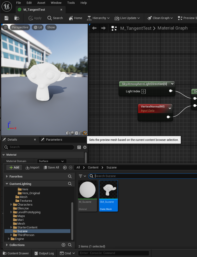 Sets the preview mesh based on the current content browser selection 기능을 통해