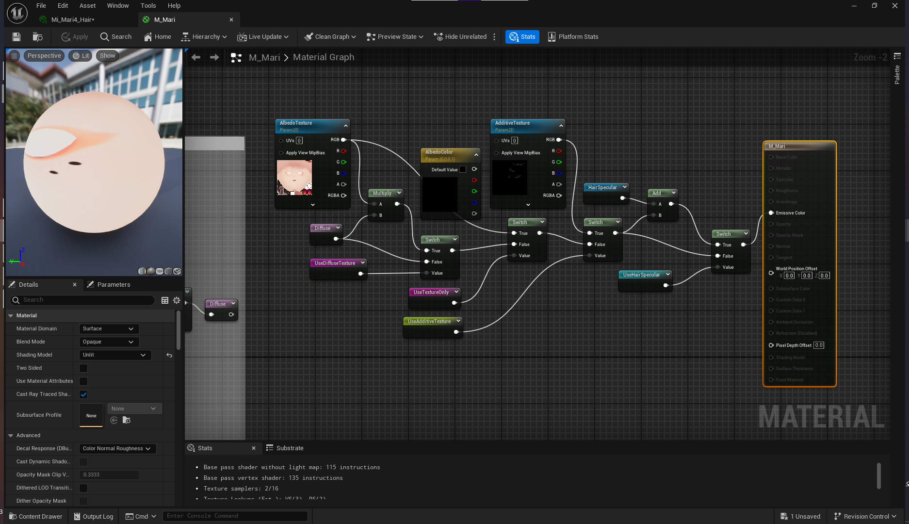 Maribase에 Hair Specular 옵션을 추가 해 주고, 4번 머티리얼에 스페큘러를 추가한다.