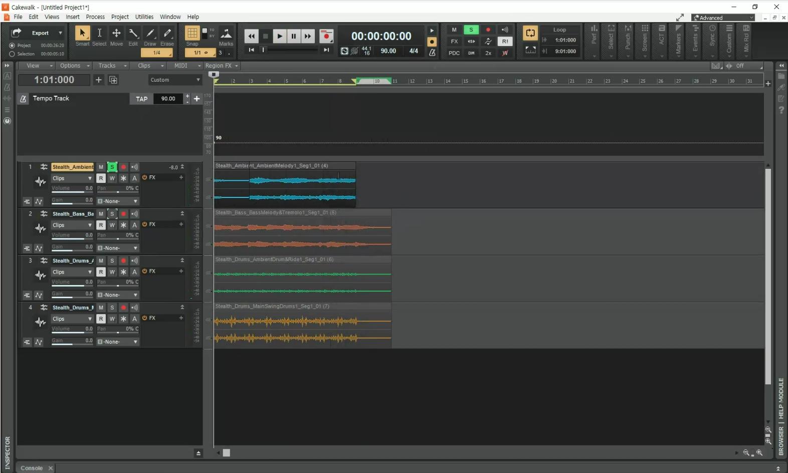 사운드 키트에서 불러와서, 자르는 작업을 한다.