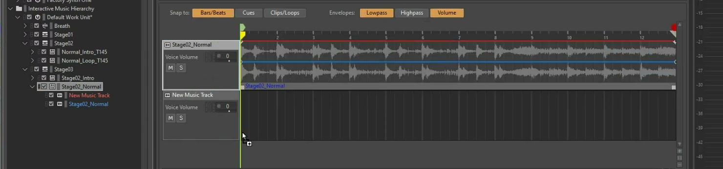 Music Segment > 빈공간 우클릭 > New Track을 통해서 트랙을 생성 해 줘야 배틀 뮤직을 넣을 수 있다.