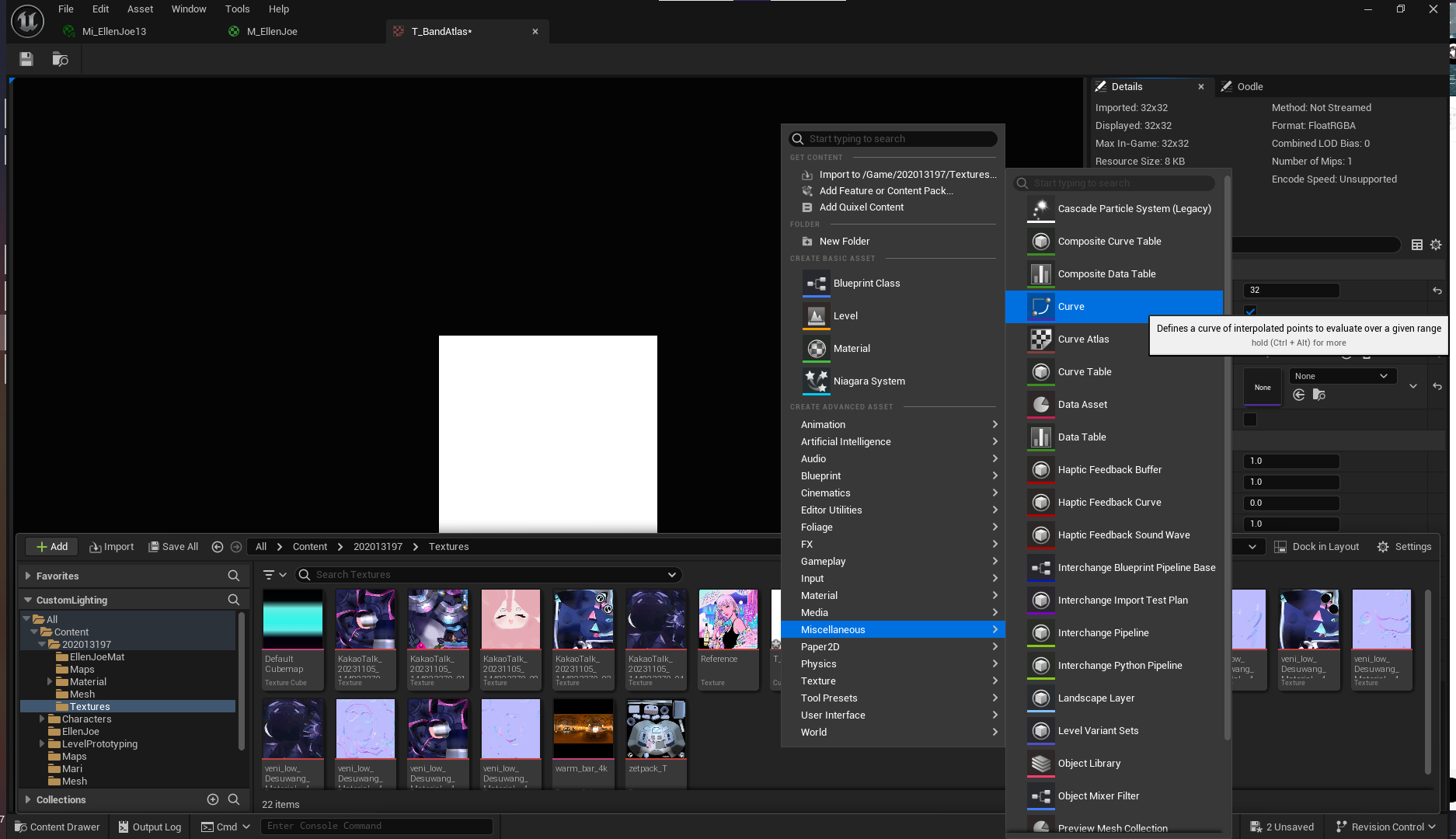 기타(Micellaneous) > Curve Atlas를 통해 T_BandAtlas 생성.