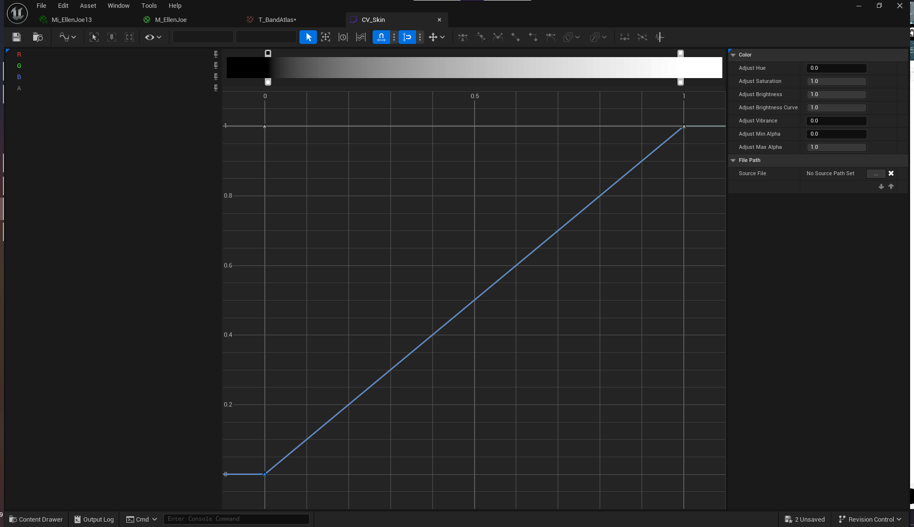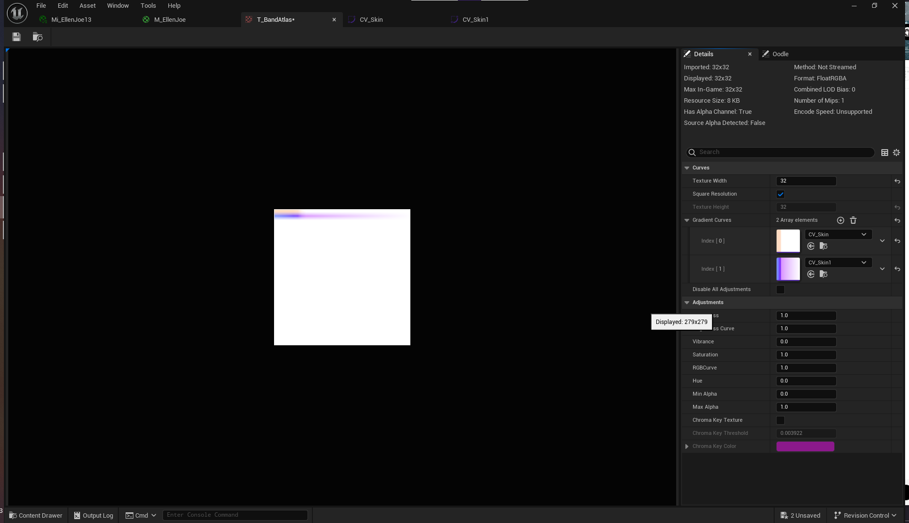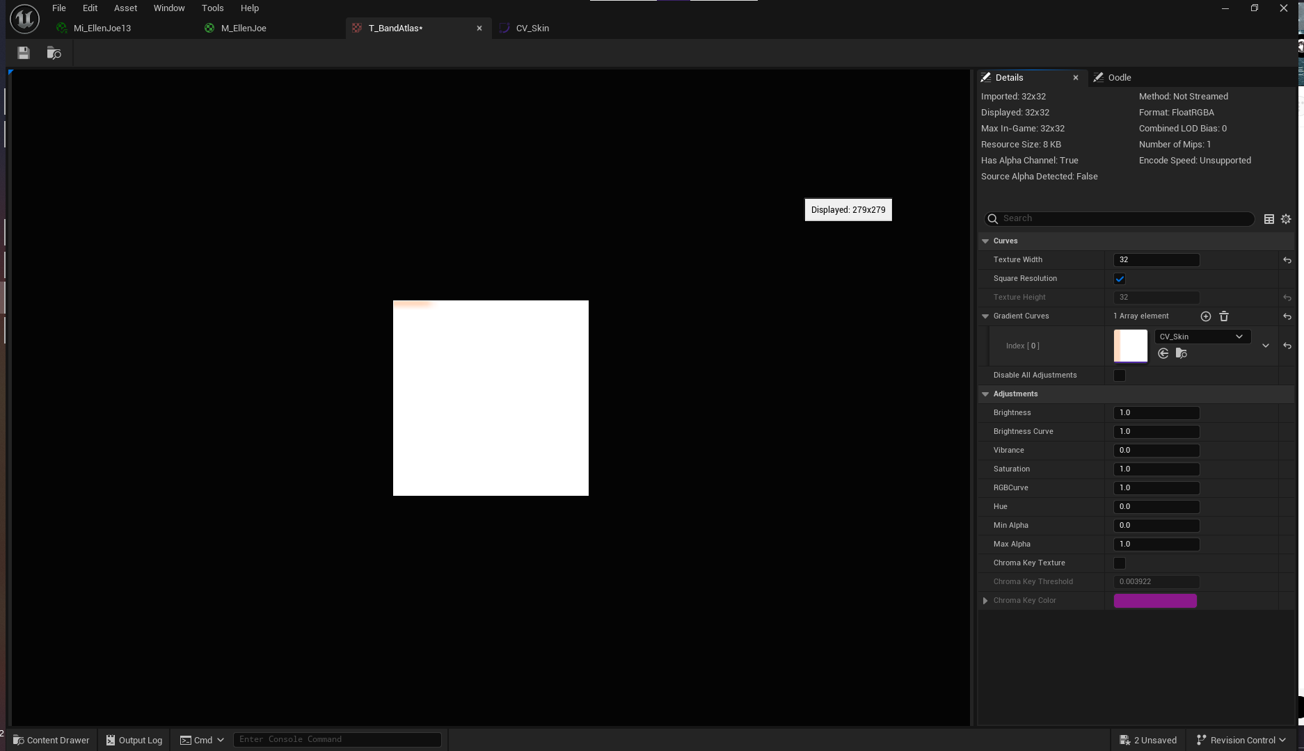 지금까지는 숫자의 집합일 뿐이고, 텍스쳐로 사용하려면 생성한 T_BandAtlas에 넣어주어야 한다.