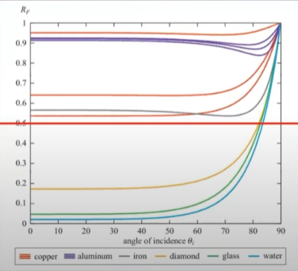 금속은 0도여도 반사가 잘 일어나는 것이다.