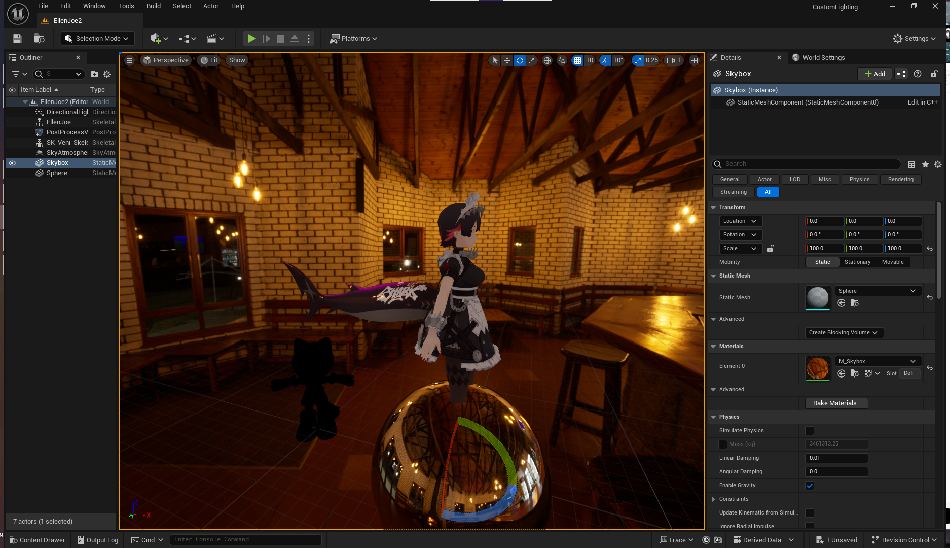 따라서 백드롭을 지우고, 스피어를 하나 만들어 Skybox로 네이밍하고 100배로 스케일링 해 준다.