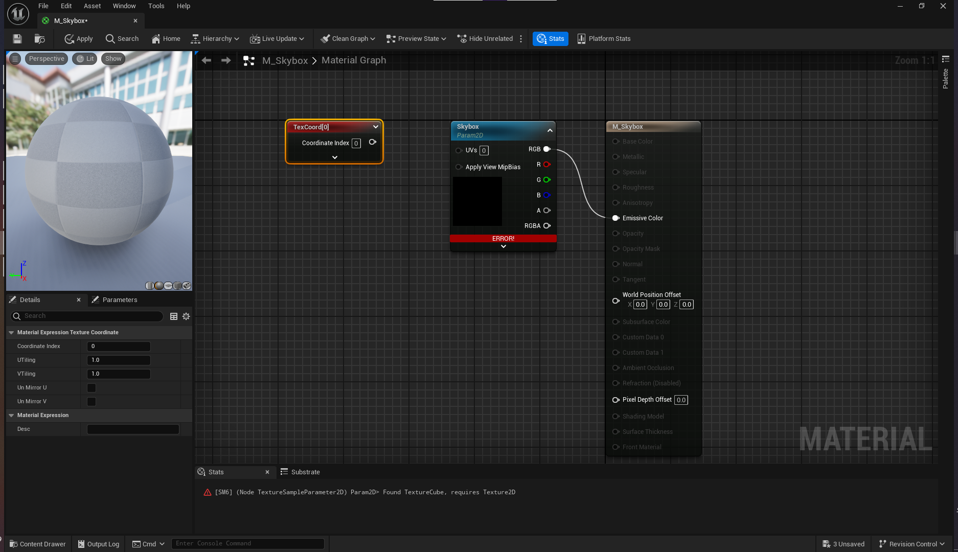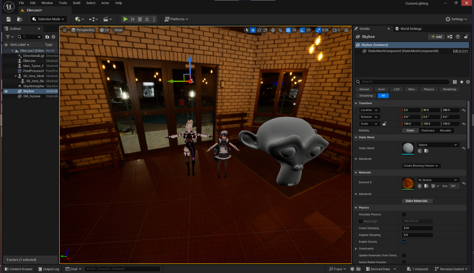 따라서 백드롭을 지우고, 스피어를 하나 만들어 Skybox로 네이밍하고 100배로 스케일링 해 준다.