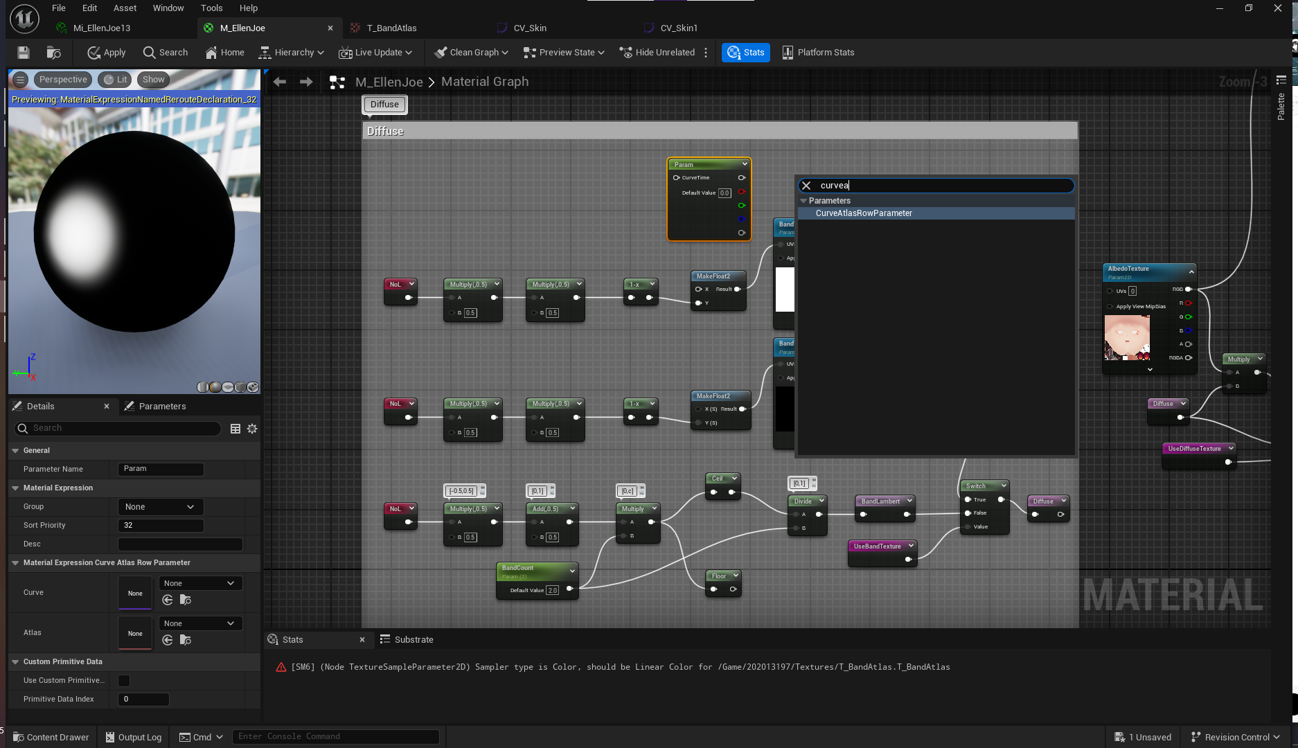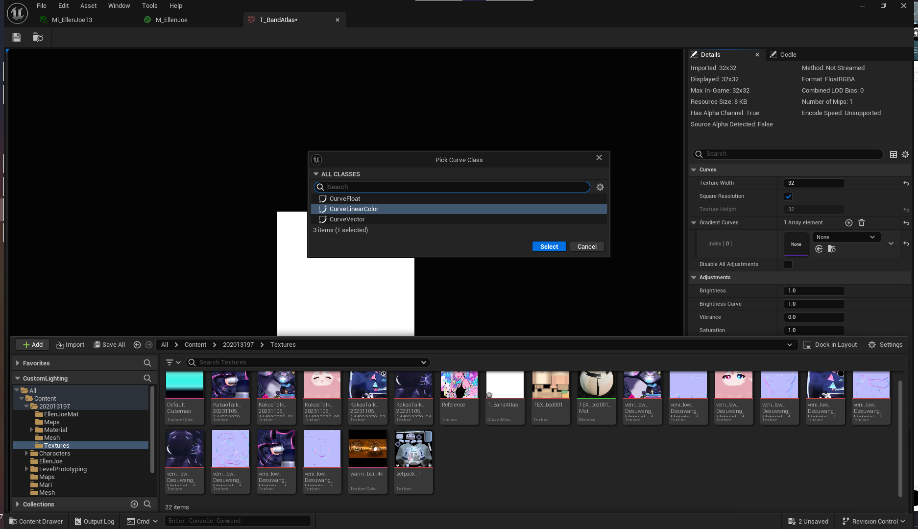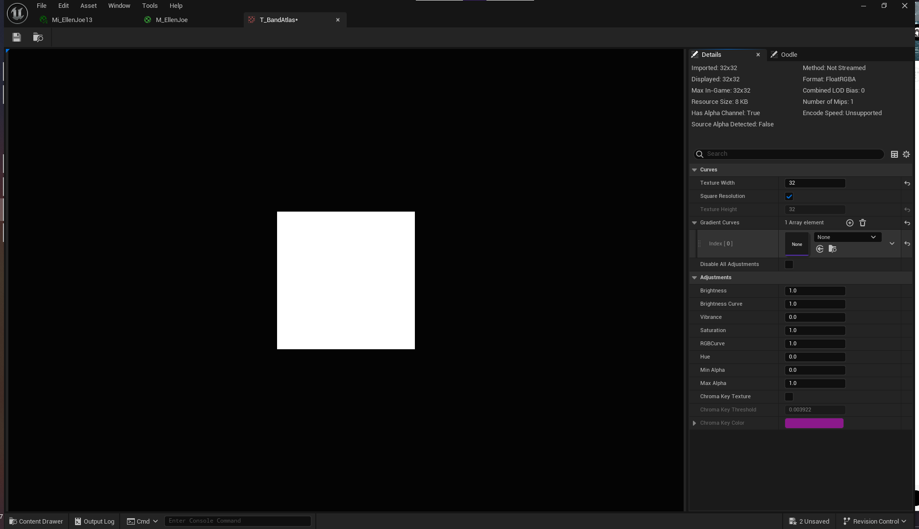 지금까지는 숫자의 집합일 뿐이고, 텍스쳐로 사용하려면 생성한 T_BandAtlas에 넣어주어야 한다.