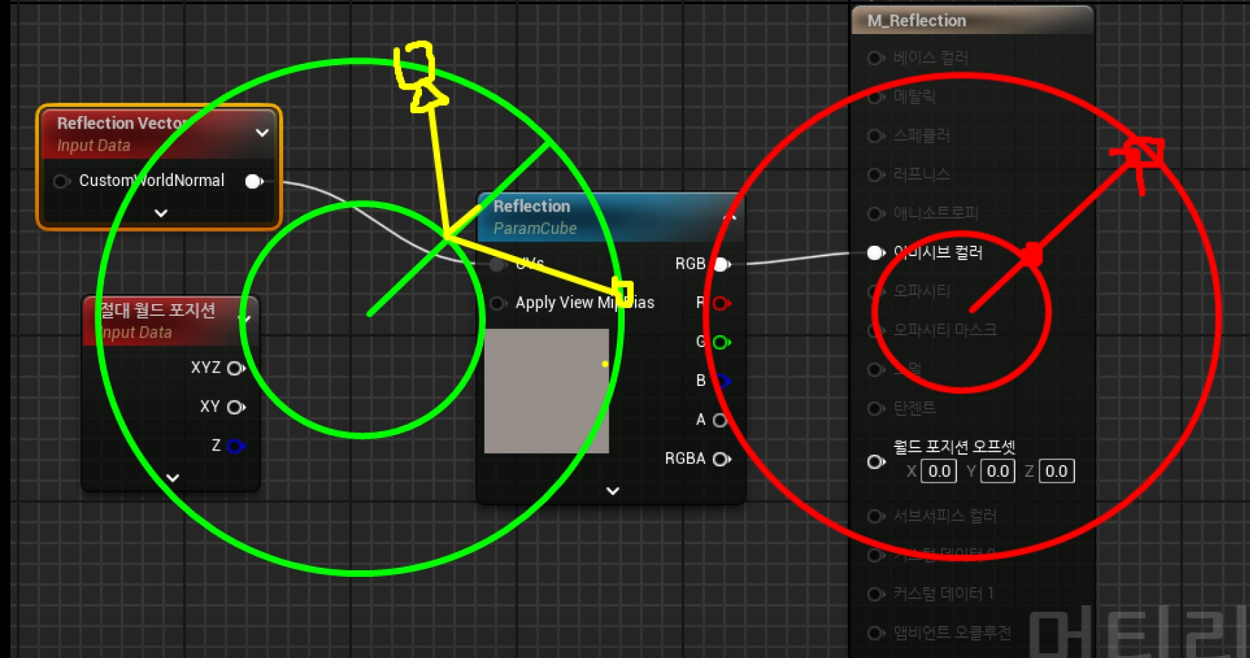 리플렉션 벡터를 사용하면 굴절이 있다.