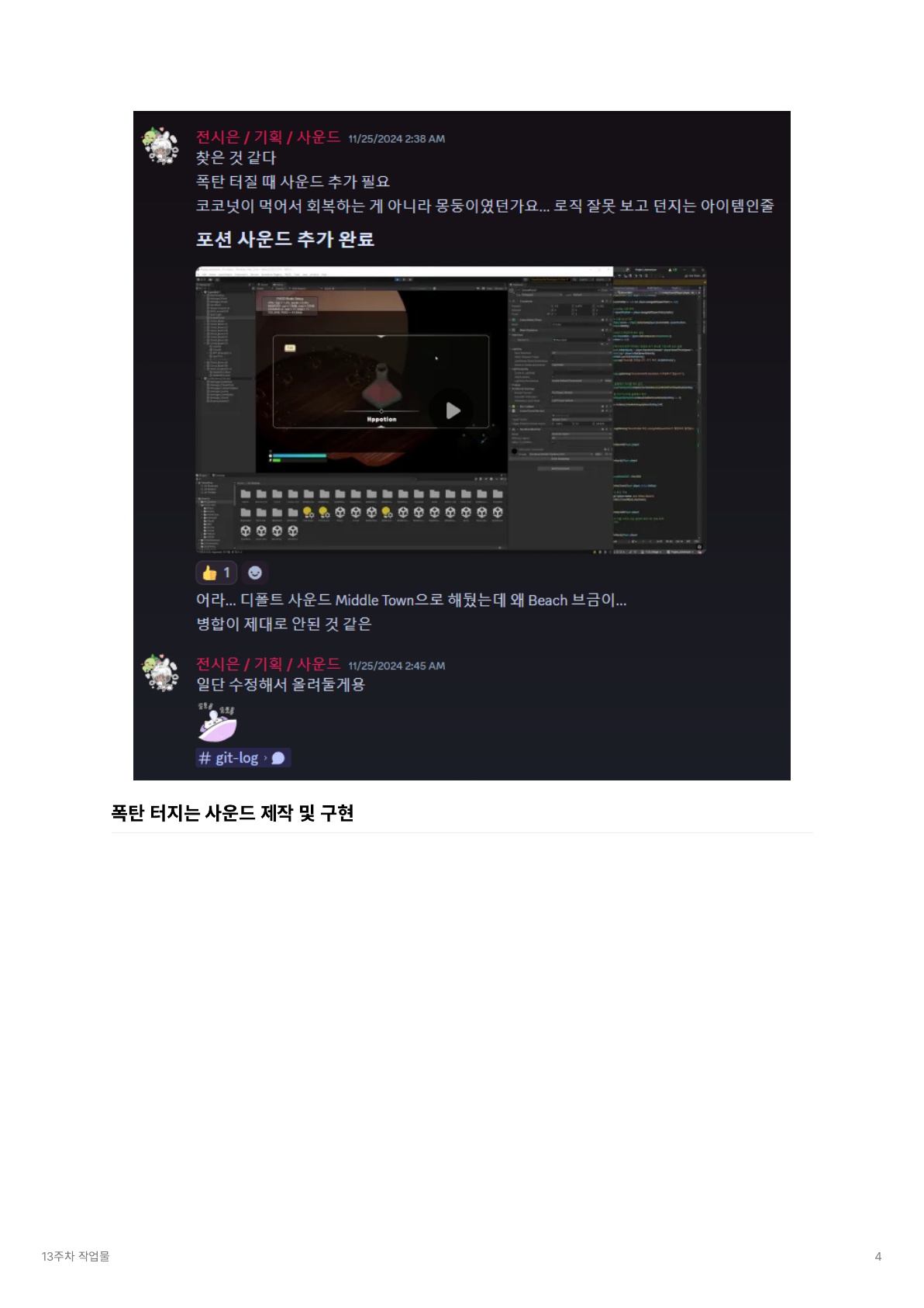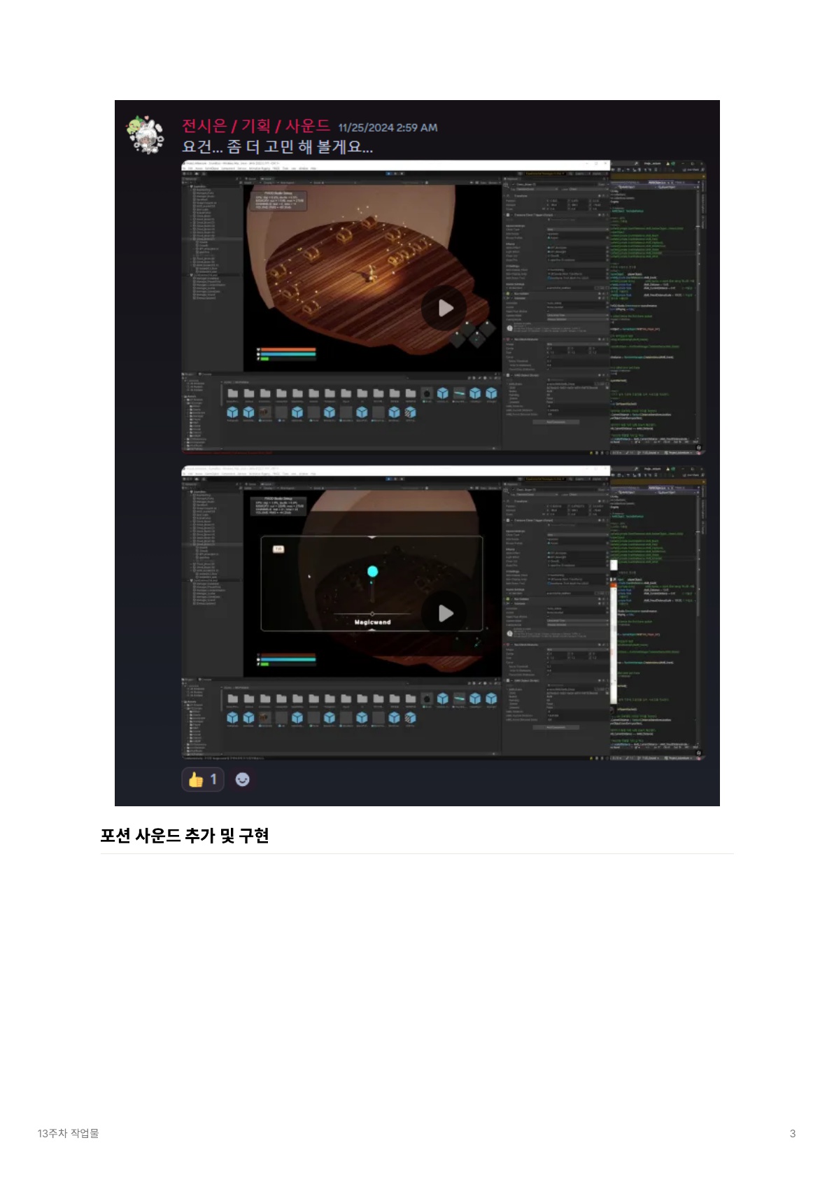 | [졸업작품 프로젝트] 취·창·프 14, 15주차 - 포스트모템, 완료보고서, 개인 일지 (0) | 2024.12.10 |