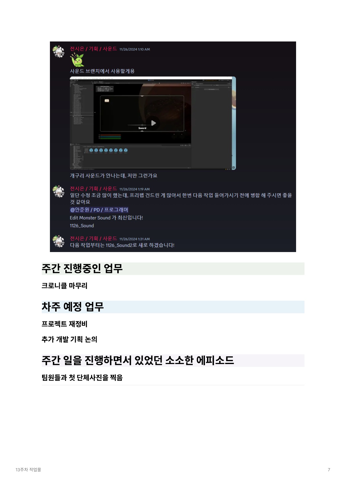 | [졸업작품 프로젝트] 취·창·프 9주차 - 팀 주간 일지, 개인 일지 (0) | 2024.11.06 |