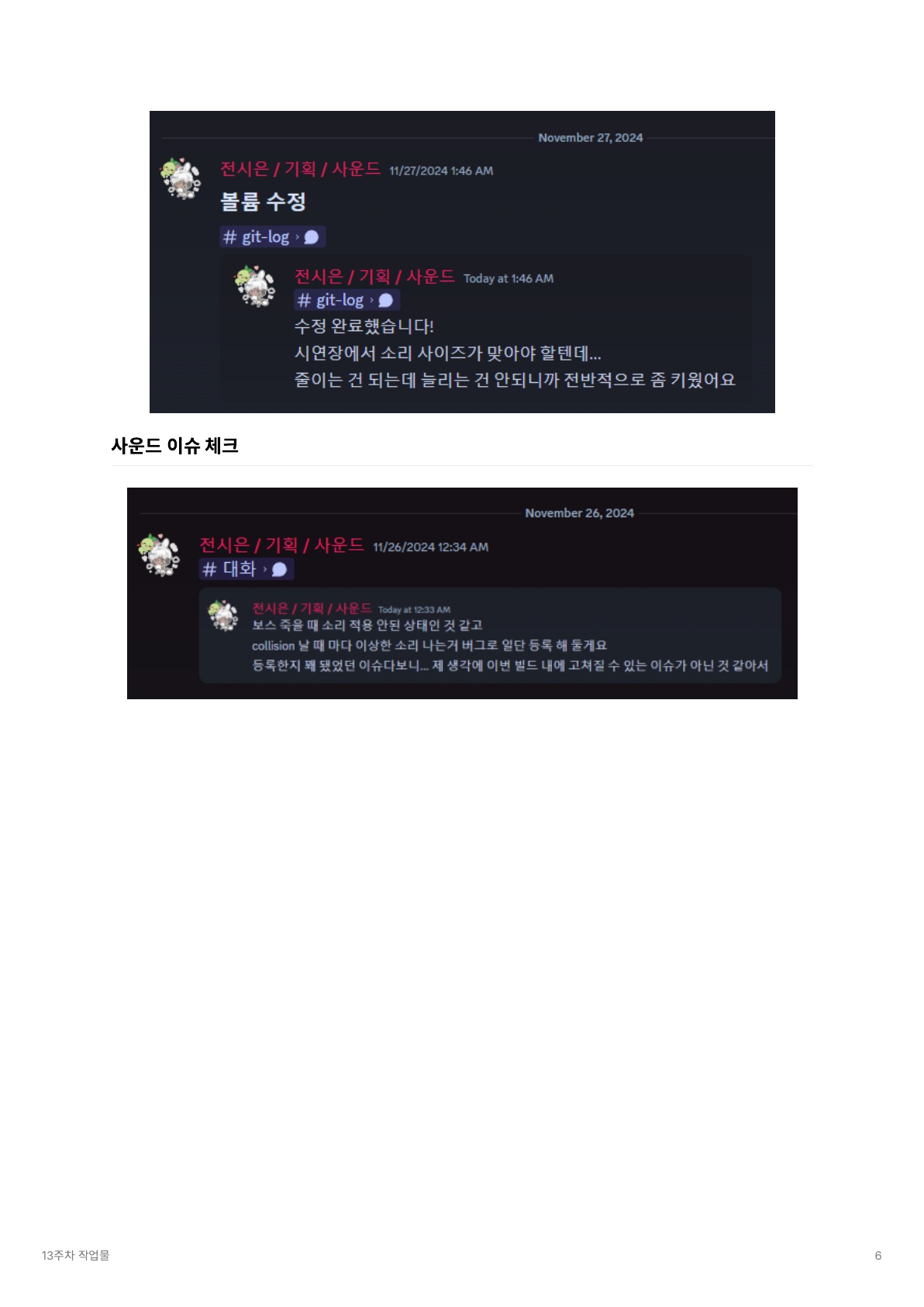 | [졸업작품 프로젝트] 취·창·프 10, 11주차 - 팀 주간 일지, 개인 일지, 16일 보강 (0) | 2024.11.19 |