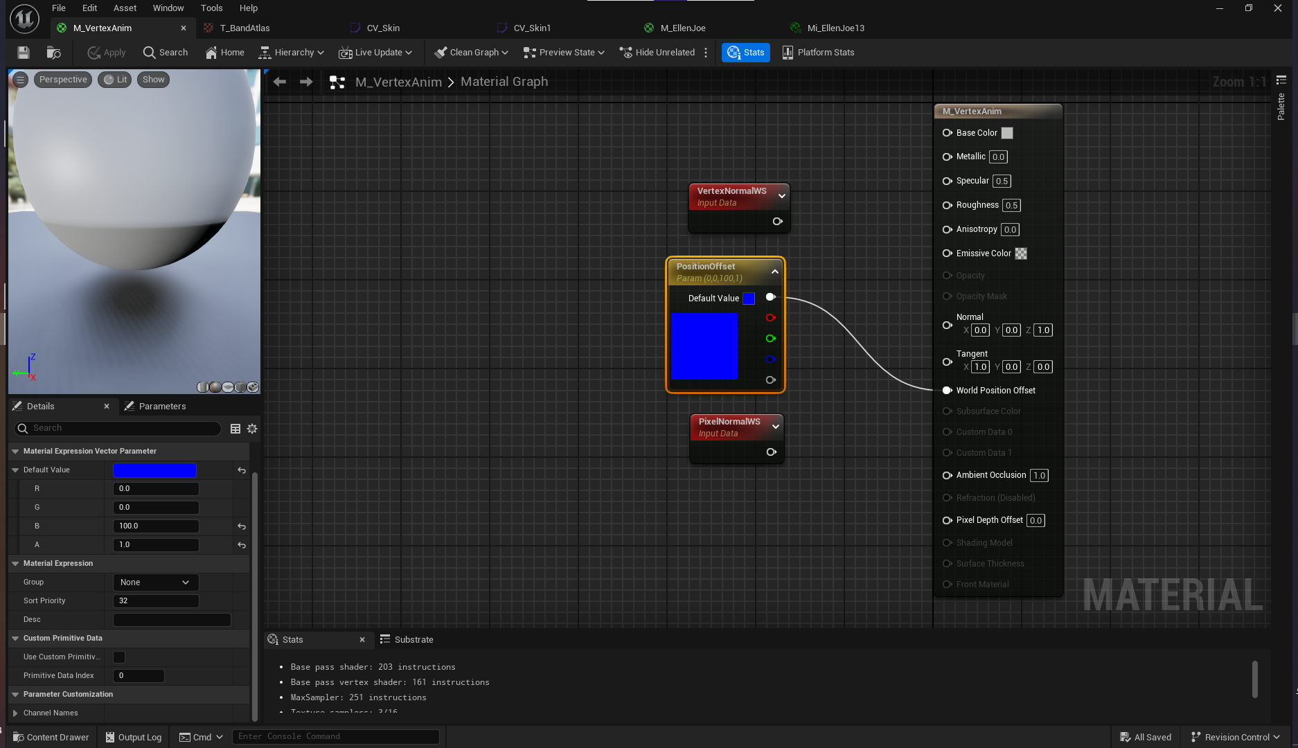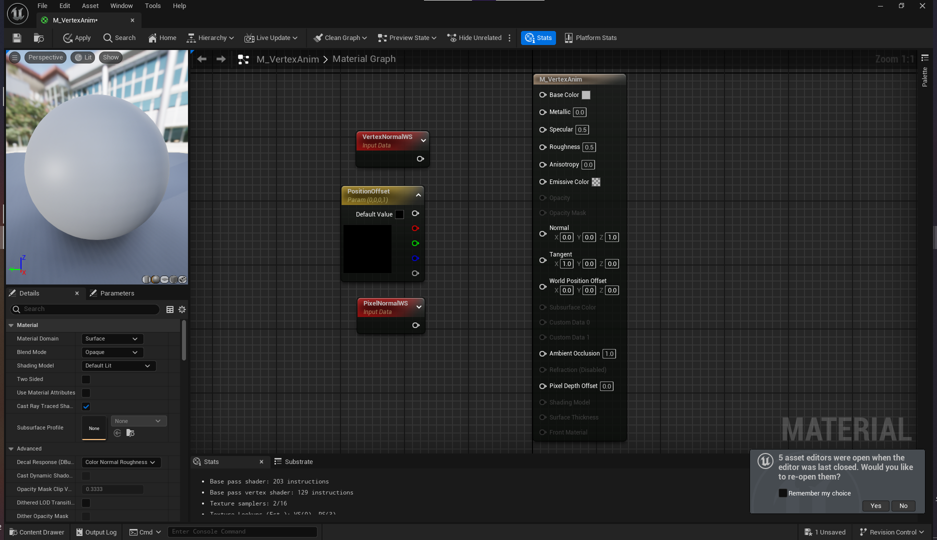 머티리얼 M_VertexAnim을 생성한다.