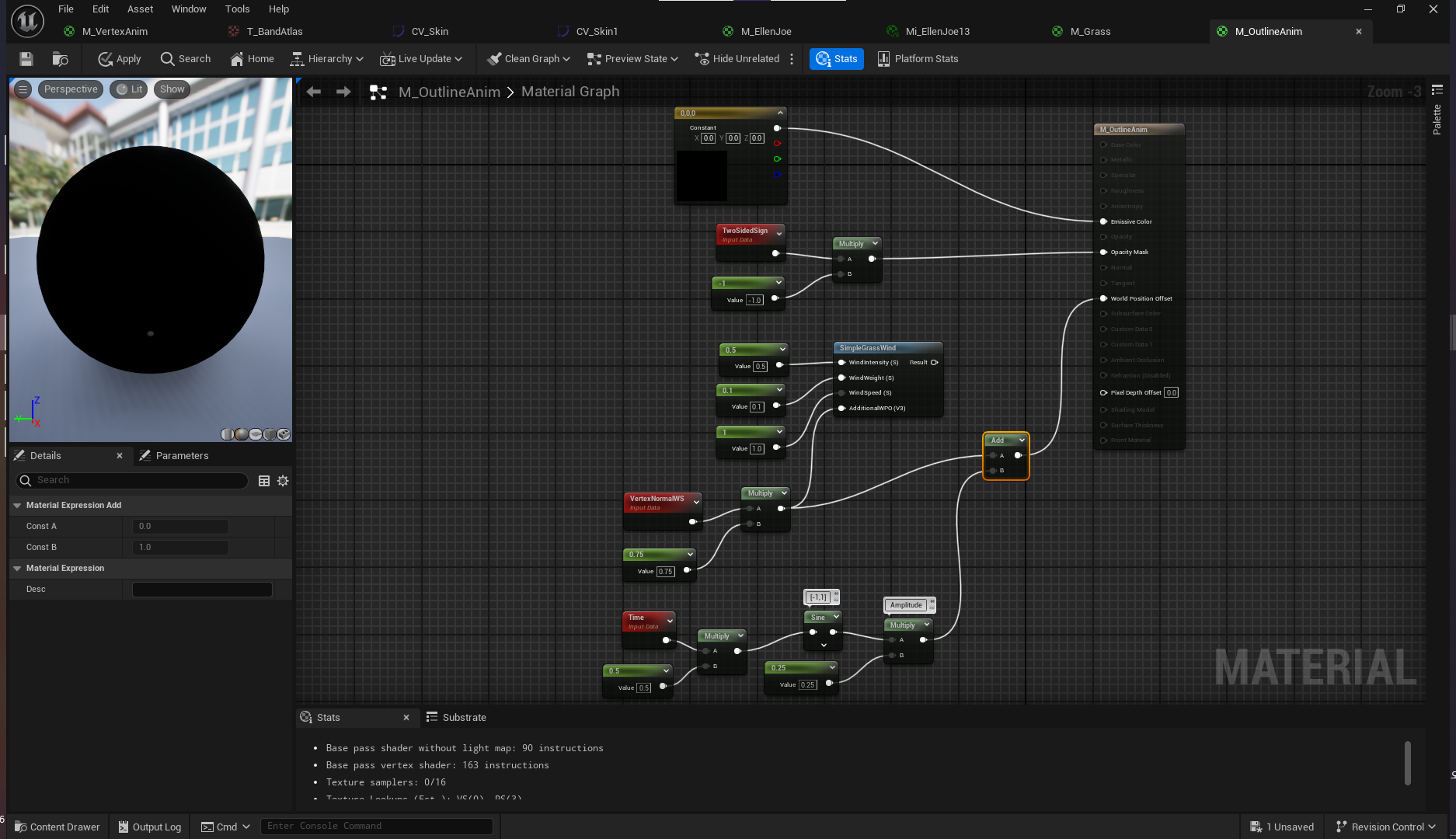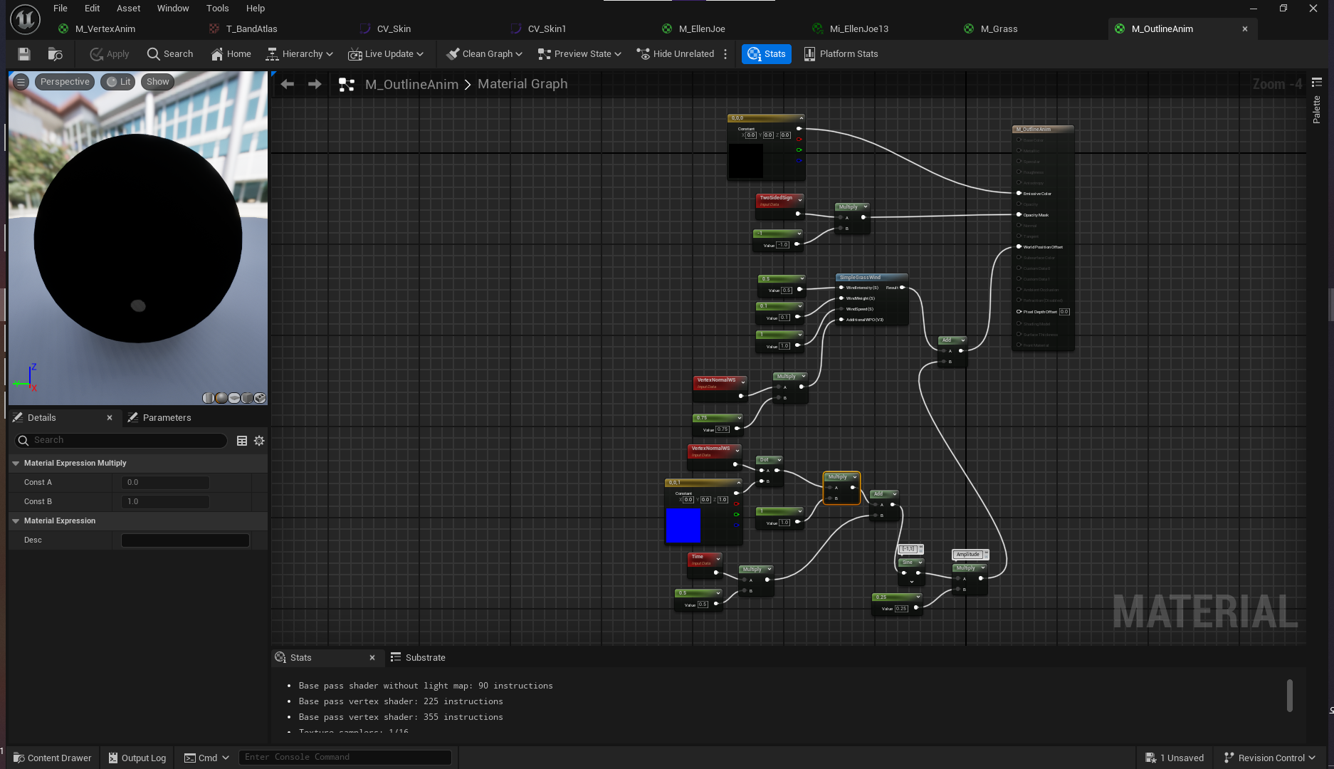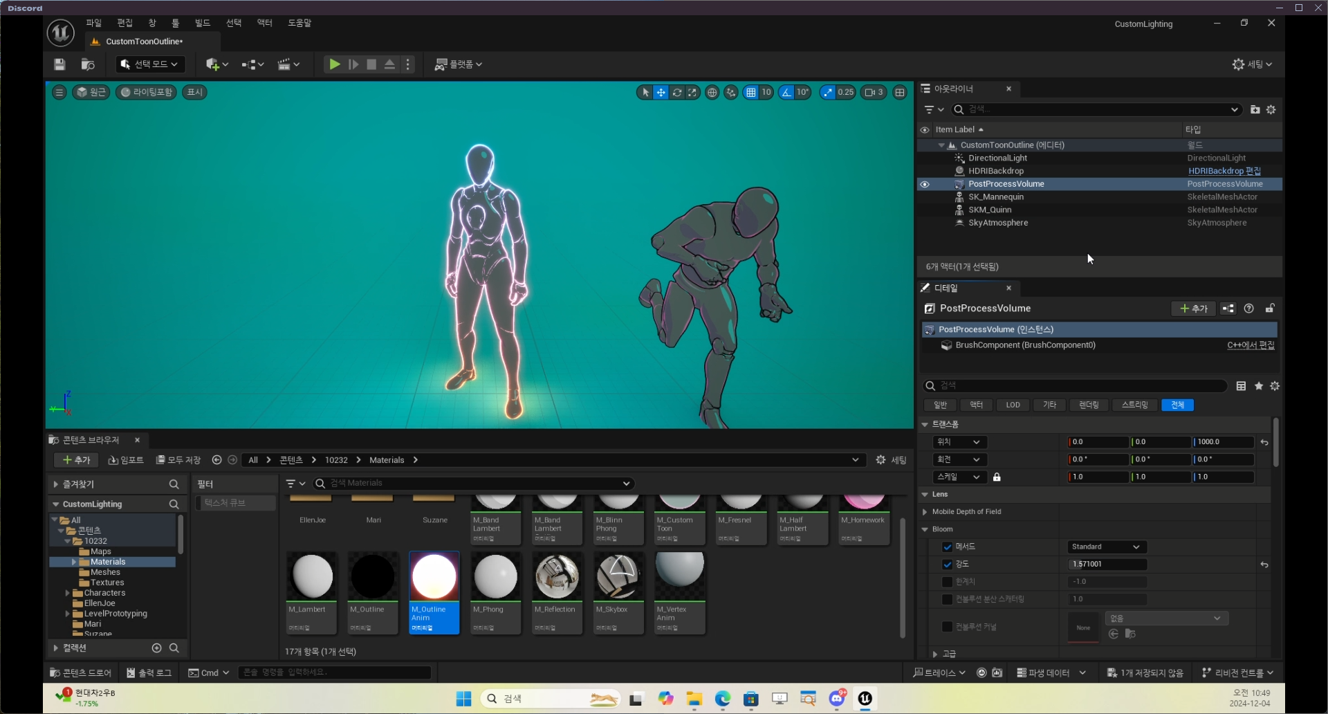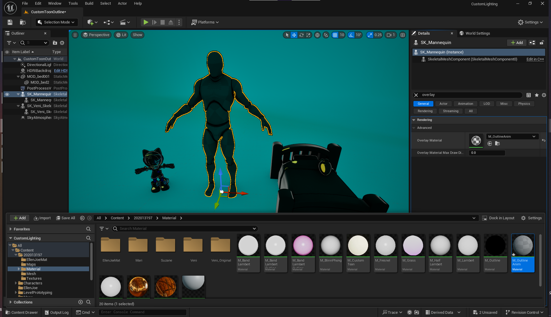 CustomToon 레벨로 돌아와서 M_OutlineAnim 머티리얼 생성