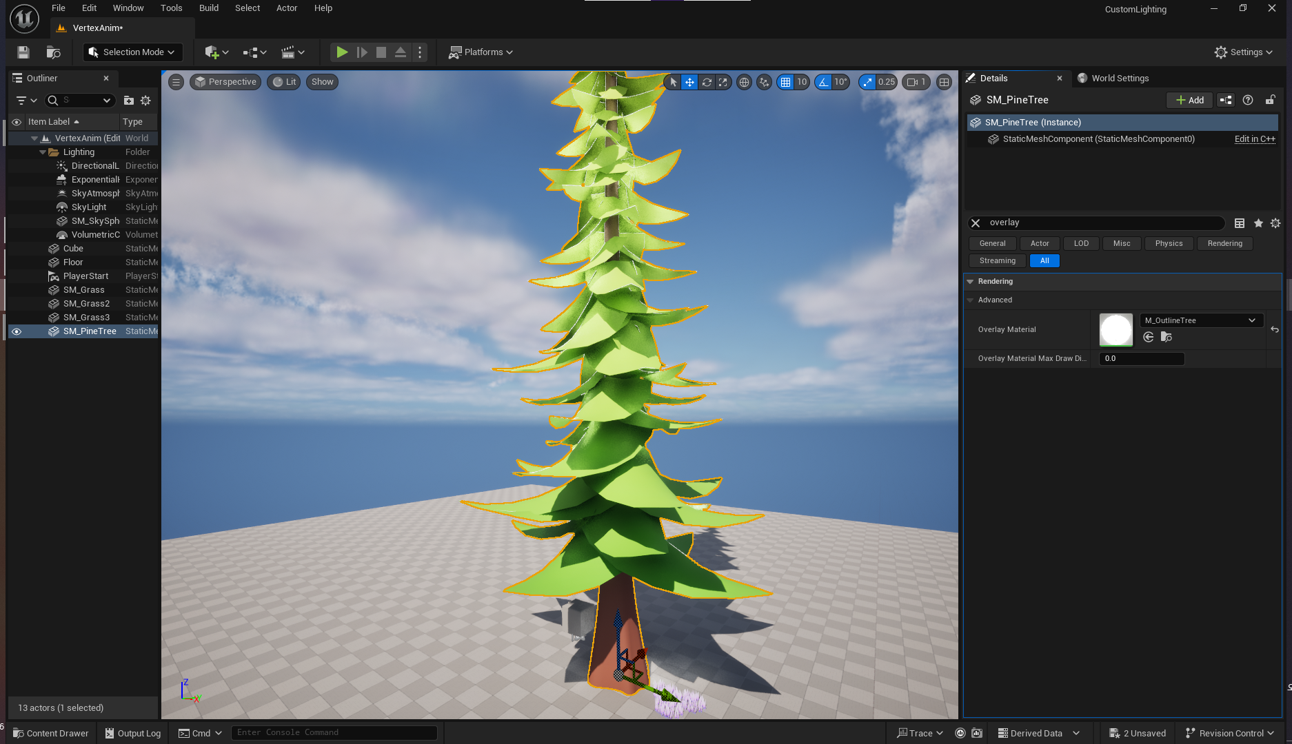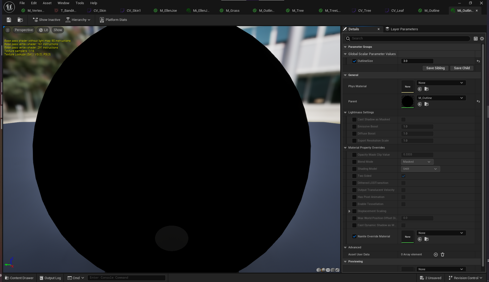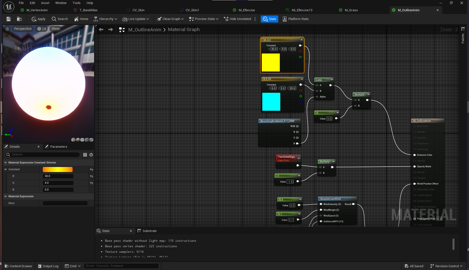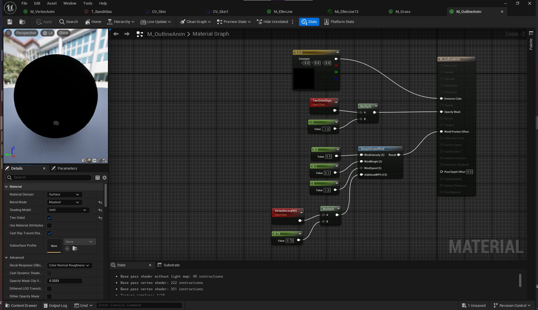 CustomToon 레벨로 돌아와서 M_OutlineAnim 머티리얼 생성