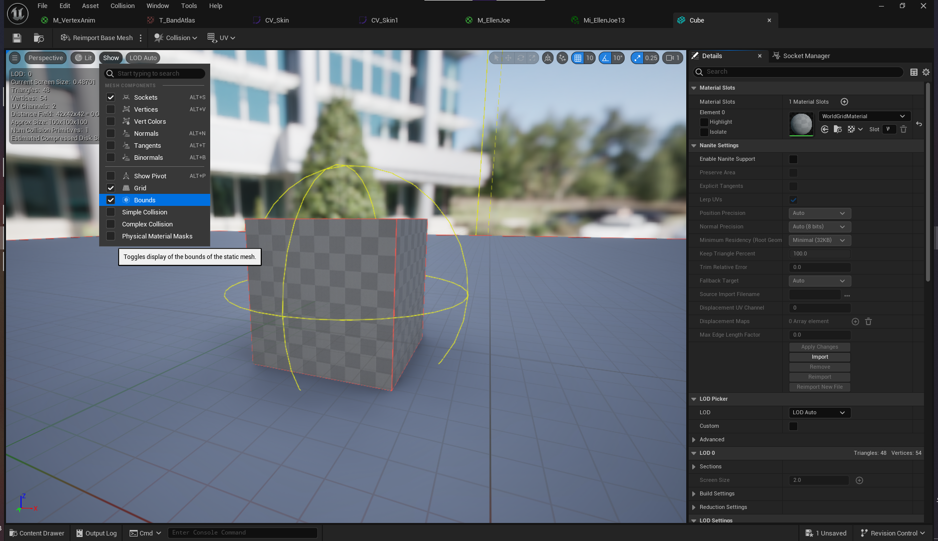 Mesh에 가서 Bounds를 체크 해 보면, 범위를 볼 수 있다.