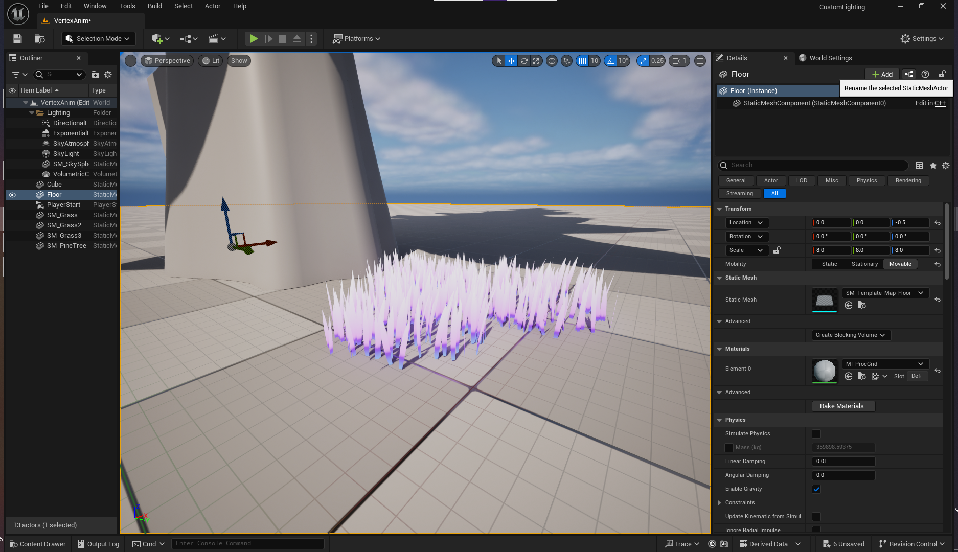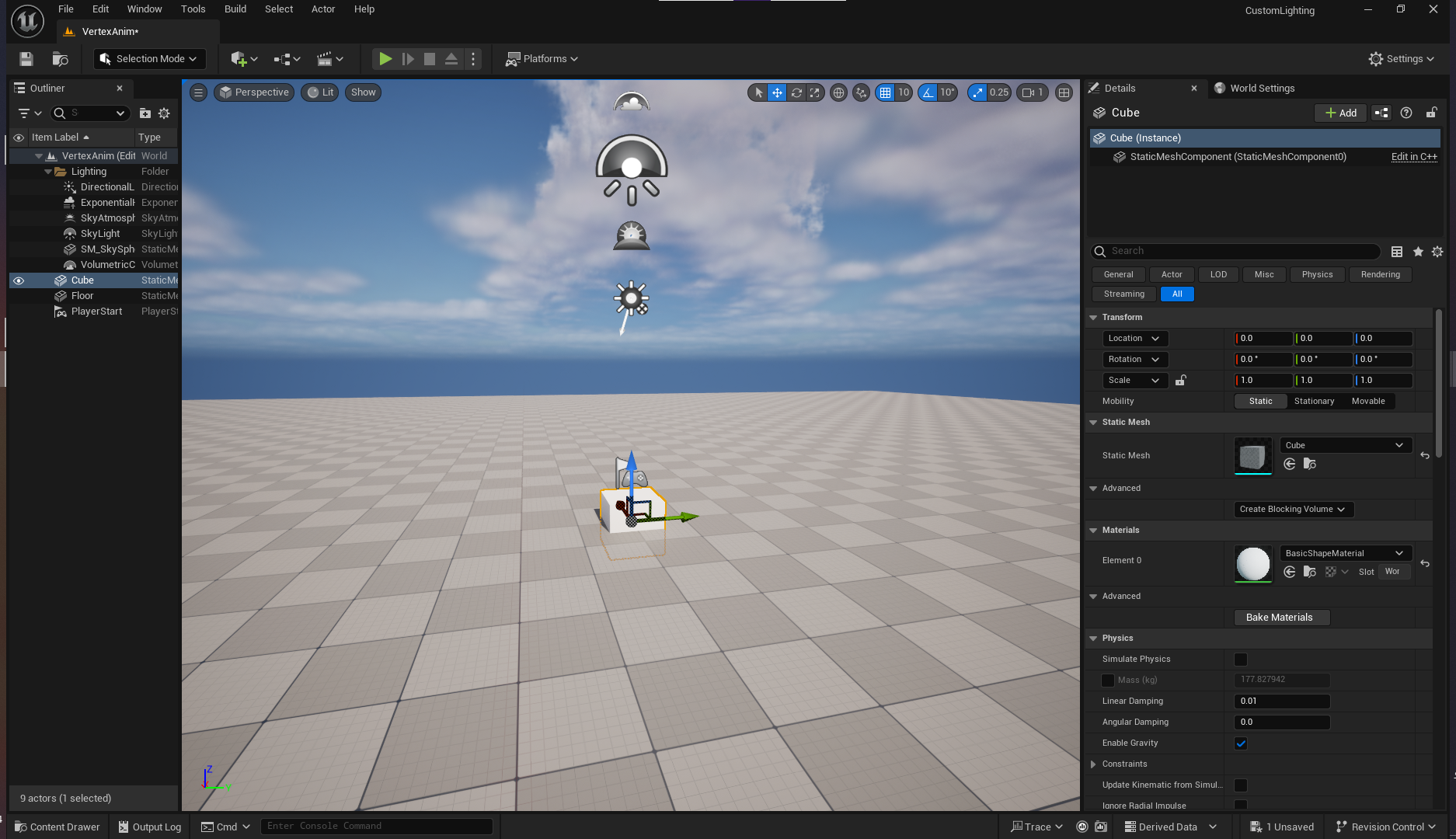 베이직 월드를 생성하고, VertexAnim이라고 저장한다.