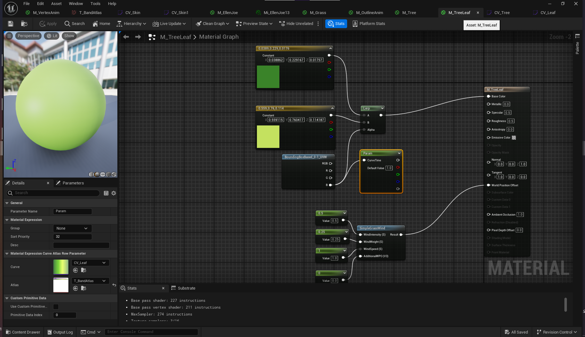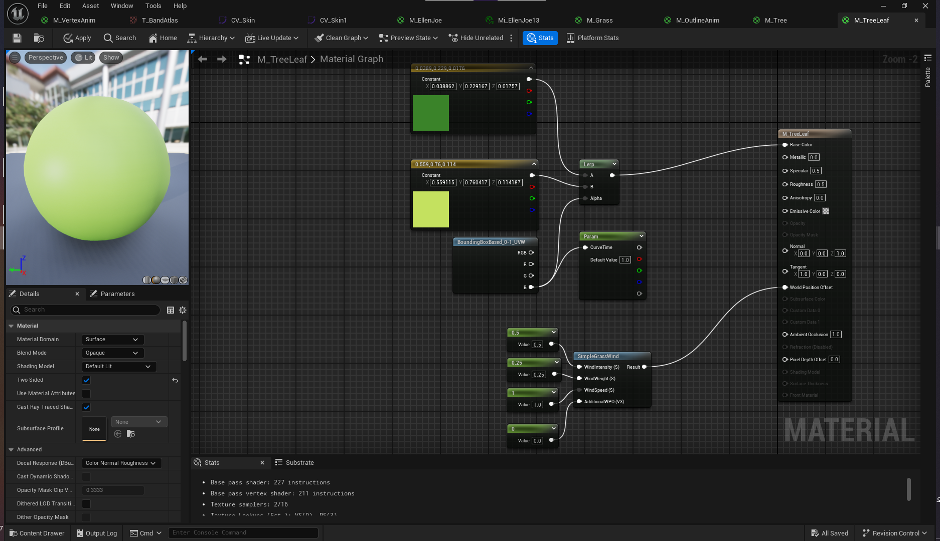 M_Grass, M_Tree, M_TreeLeaf 제작