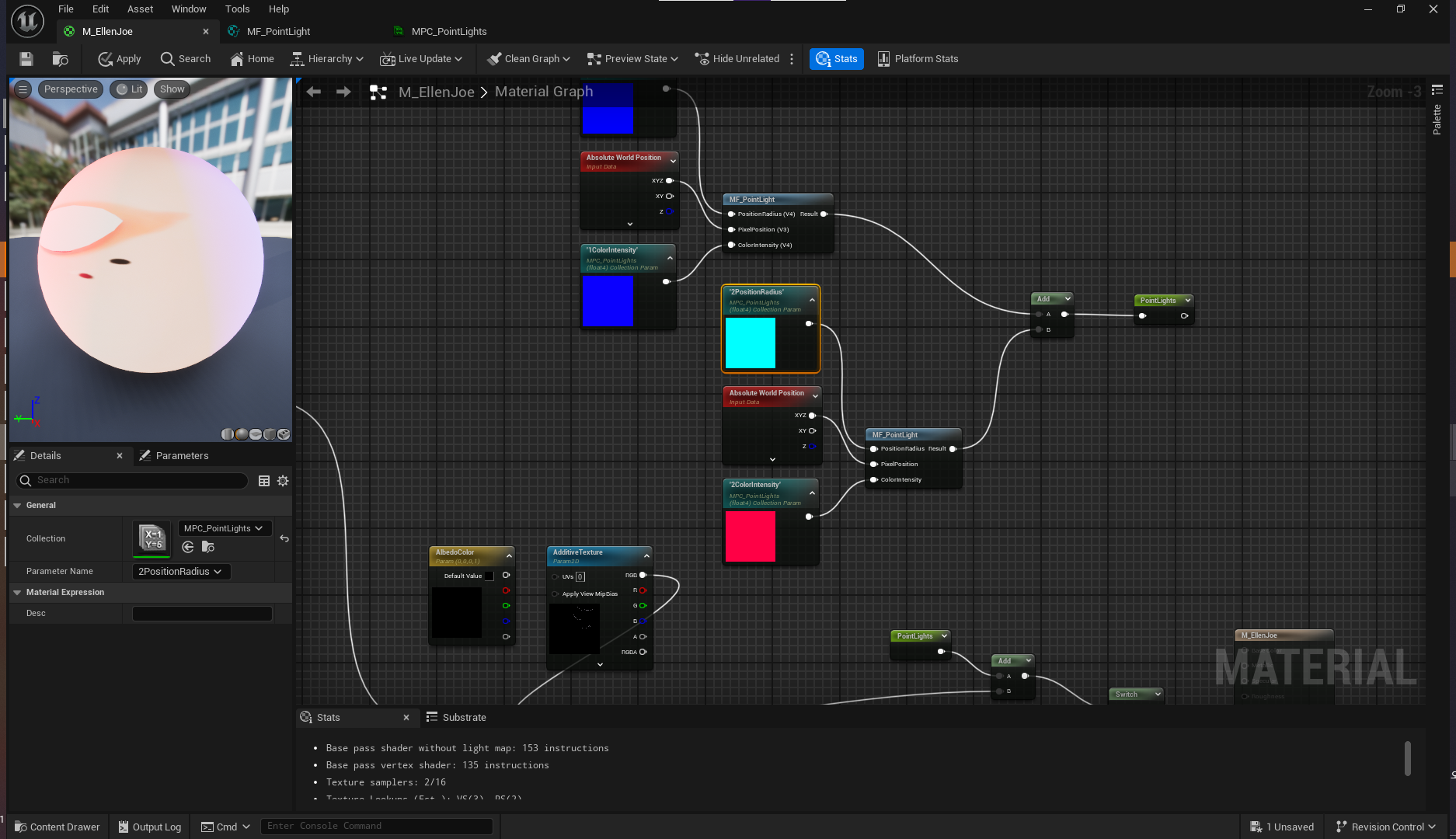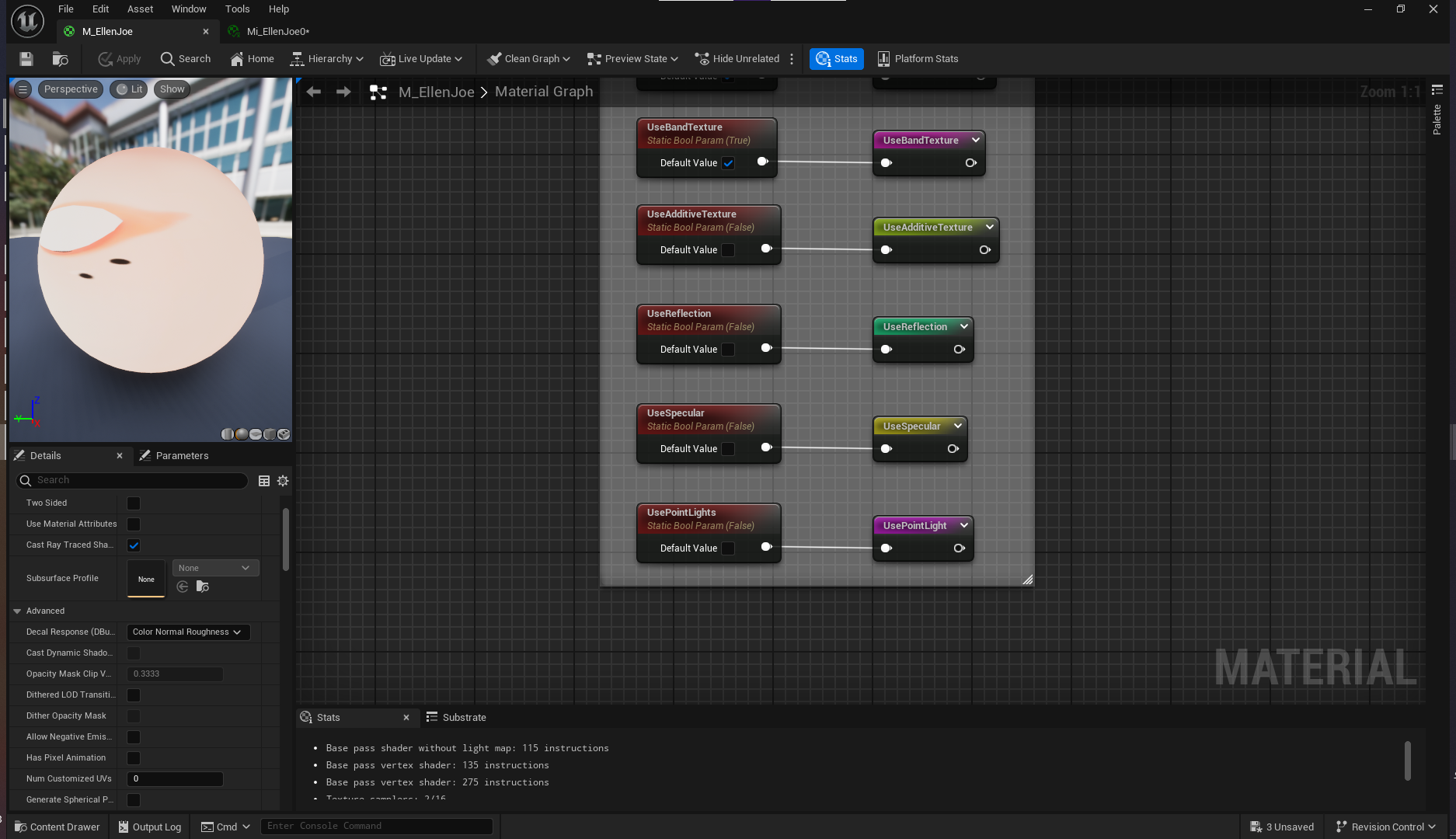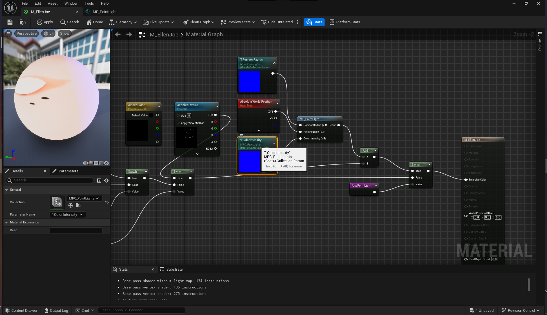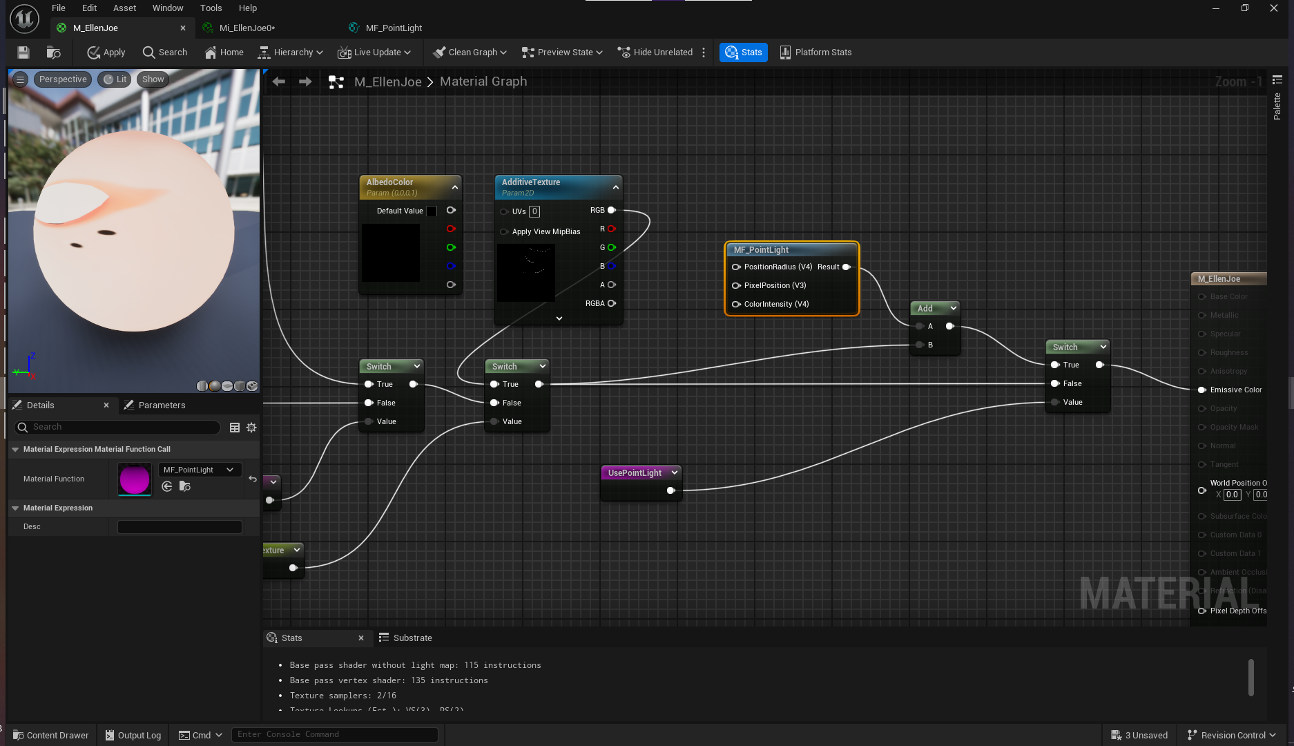 기존의 EllenJoe Base Material로 이동해서 UsePointLight Parameter를 생성 해 준다.