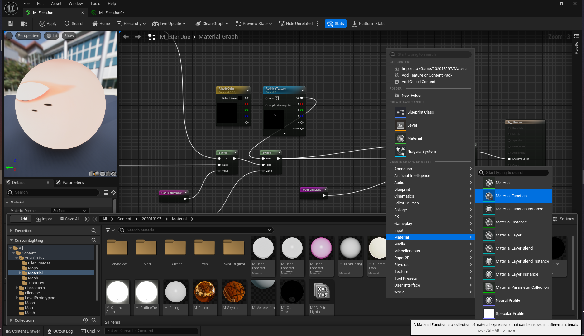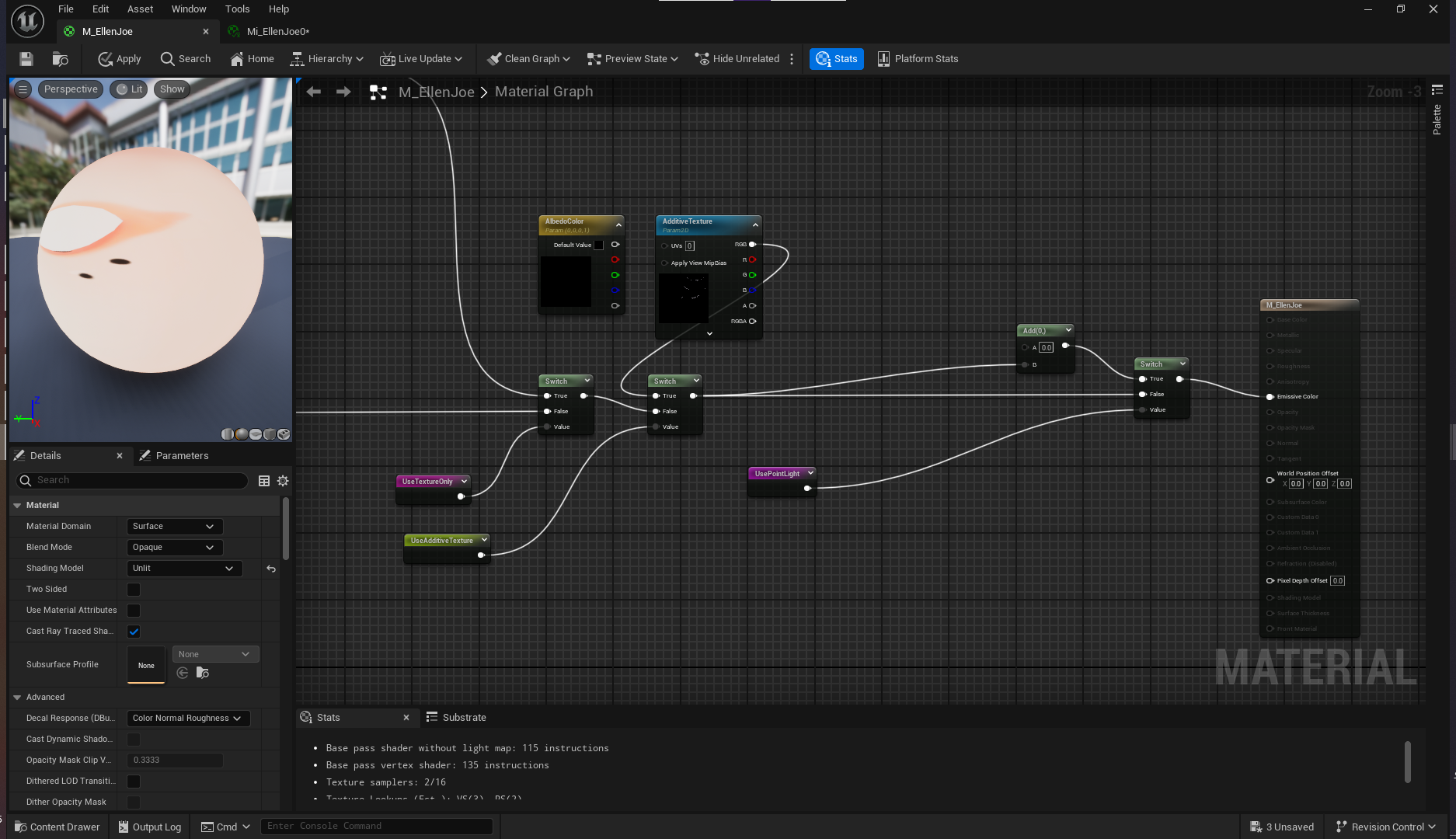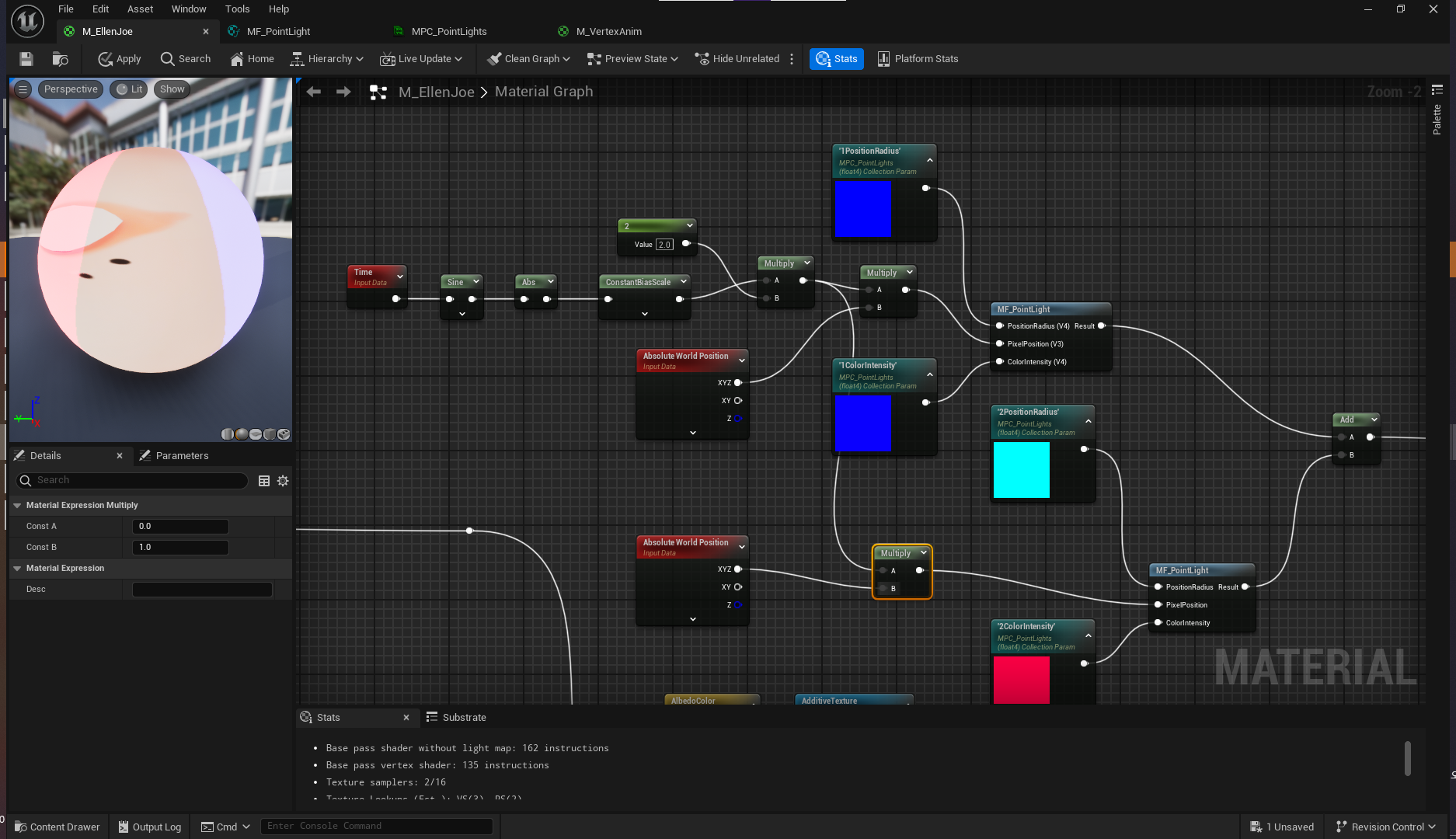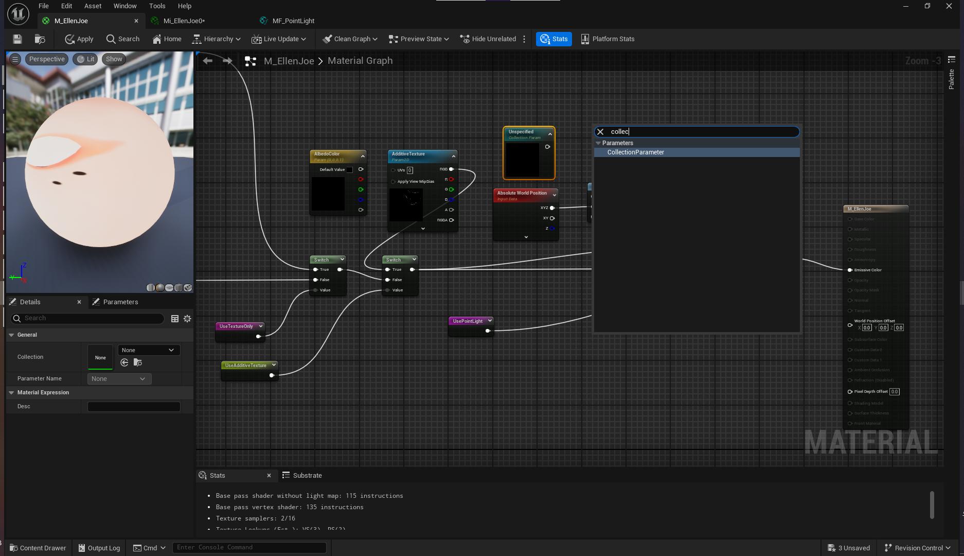 기존의 EllenJoe Base Material로 이동해서 UsePointLight Parameter를 생성 해 준다.