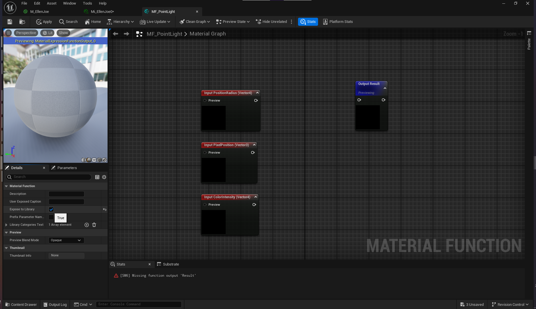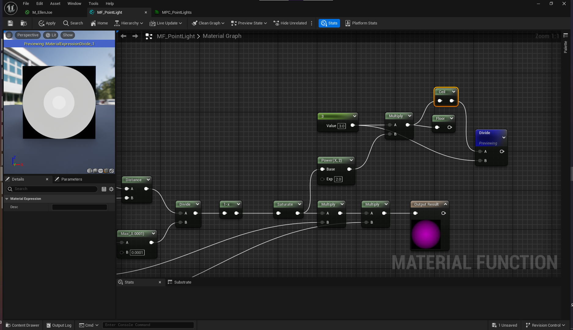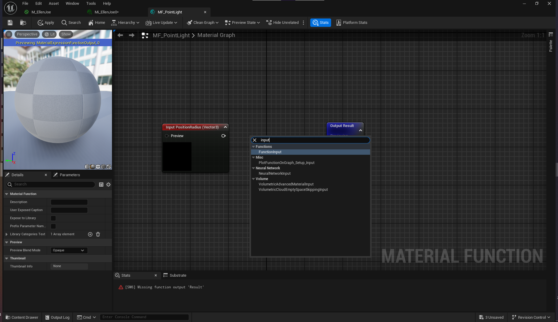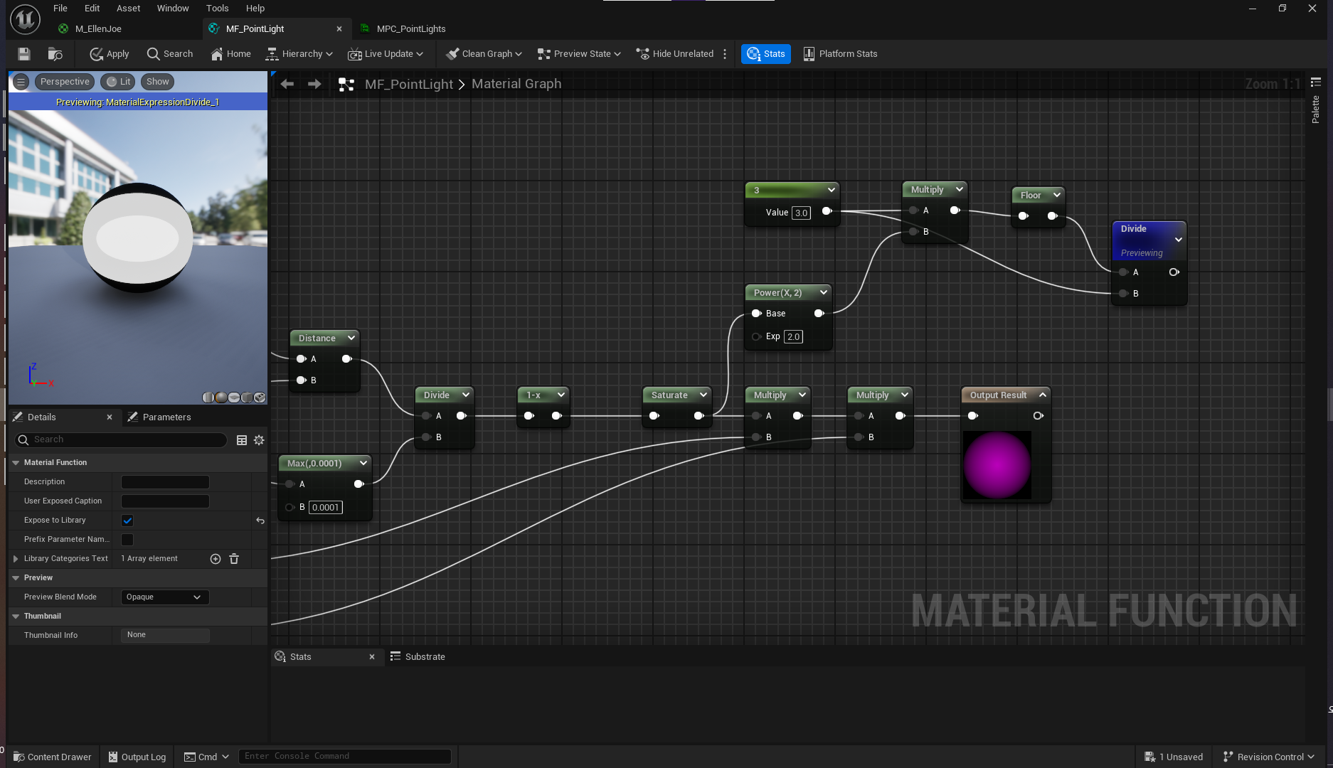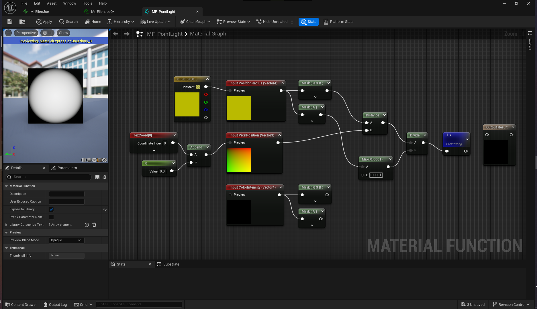 머티리얼 펑션 MF_PointLight를 생성한다.