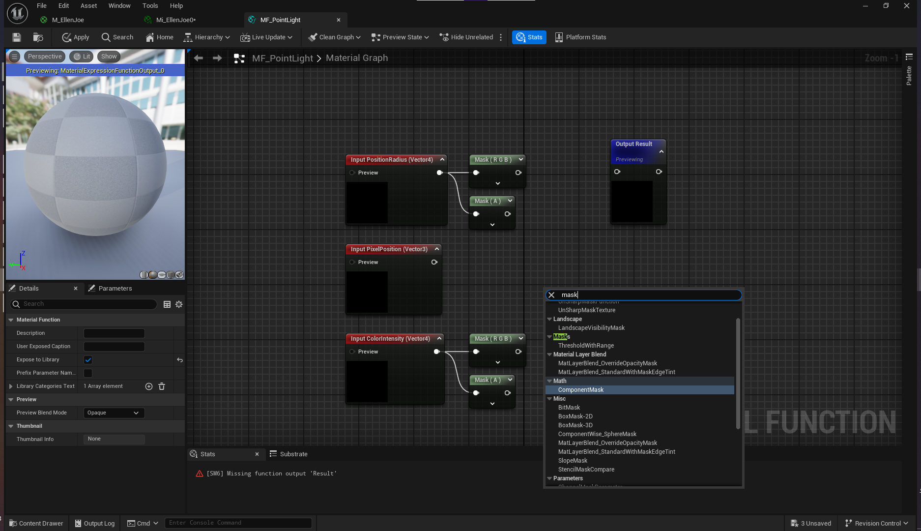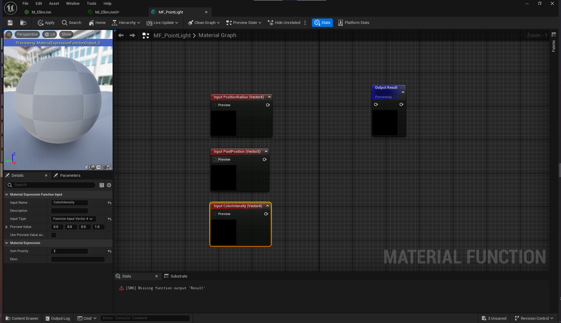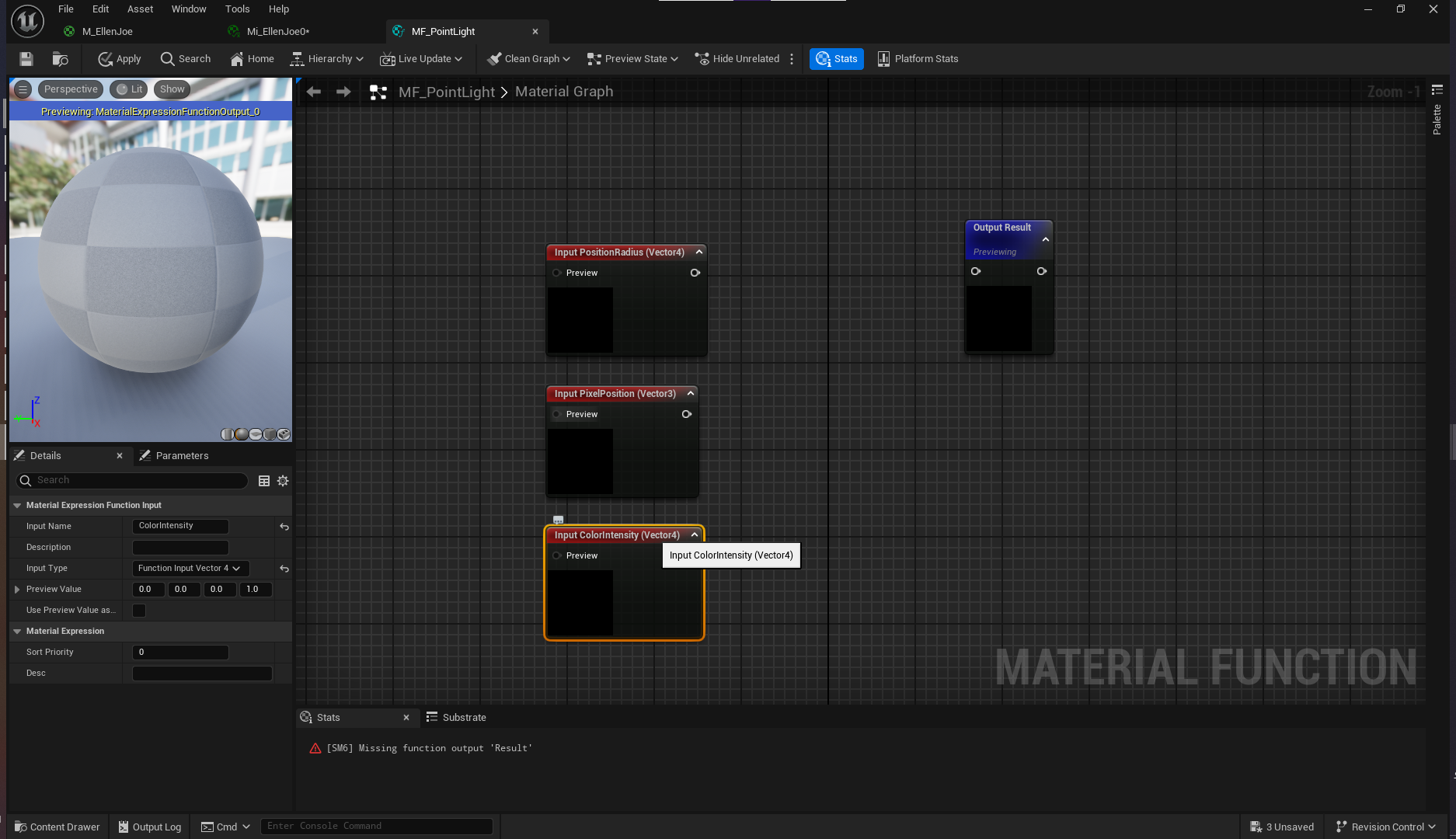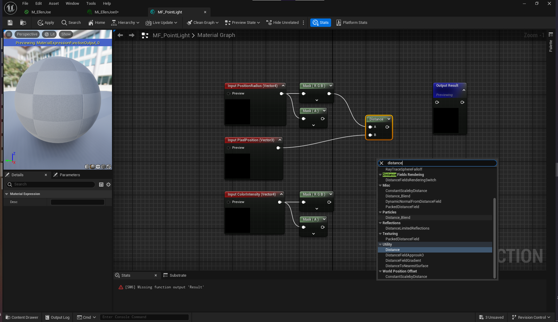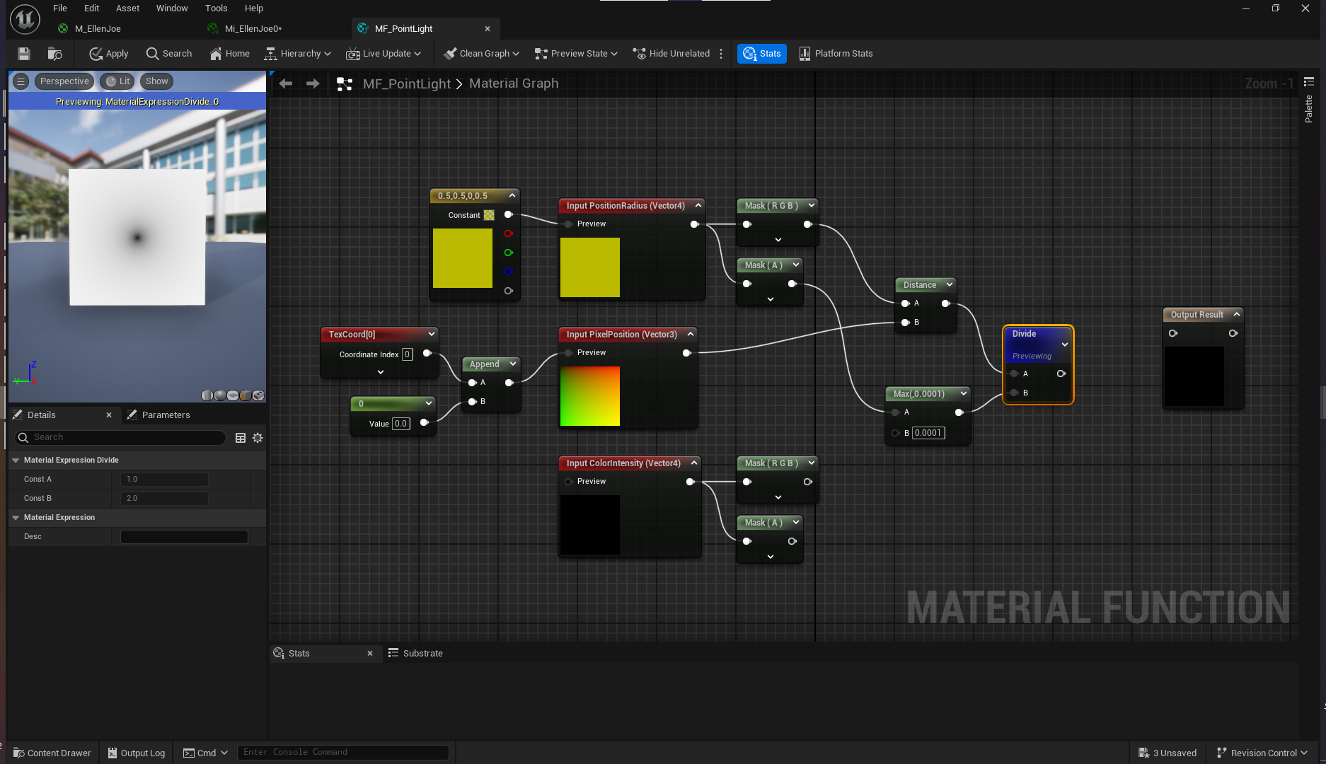 머티리얼 펑션 MF_PointLight를 생성한다.