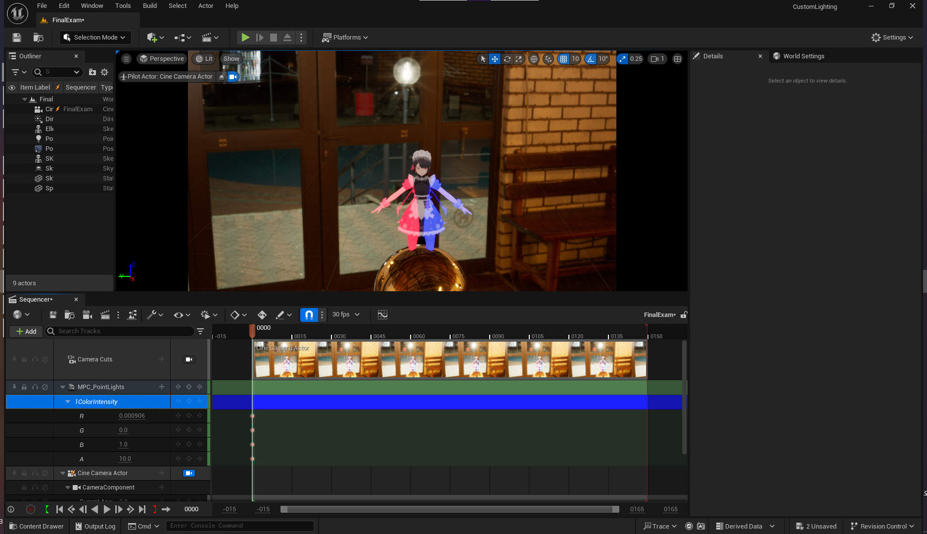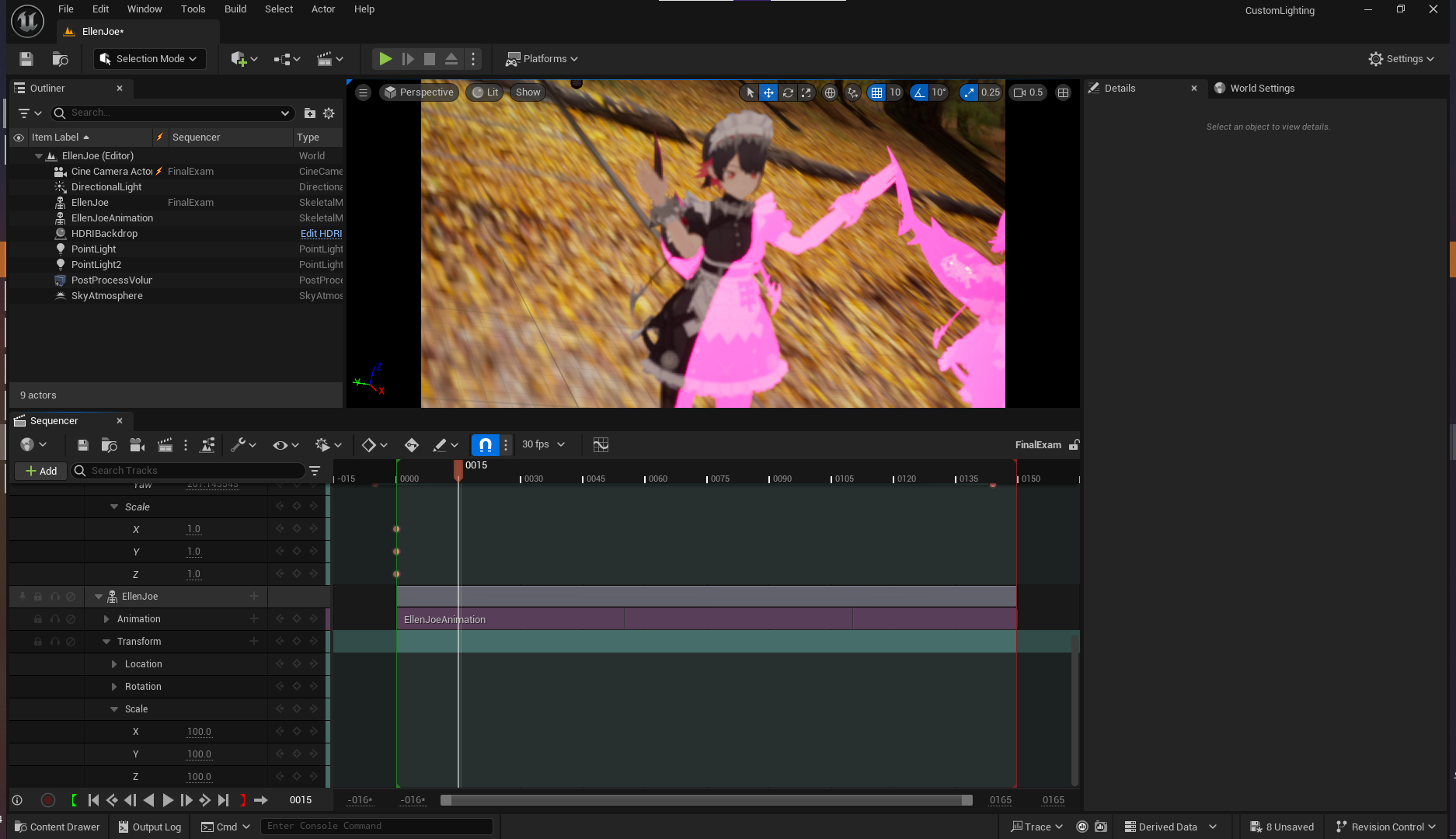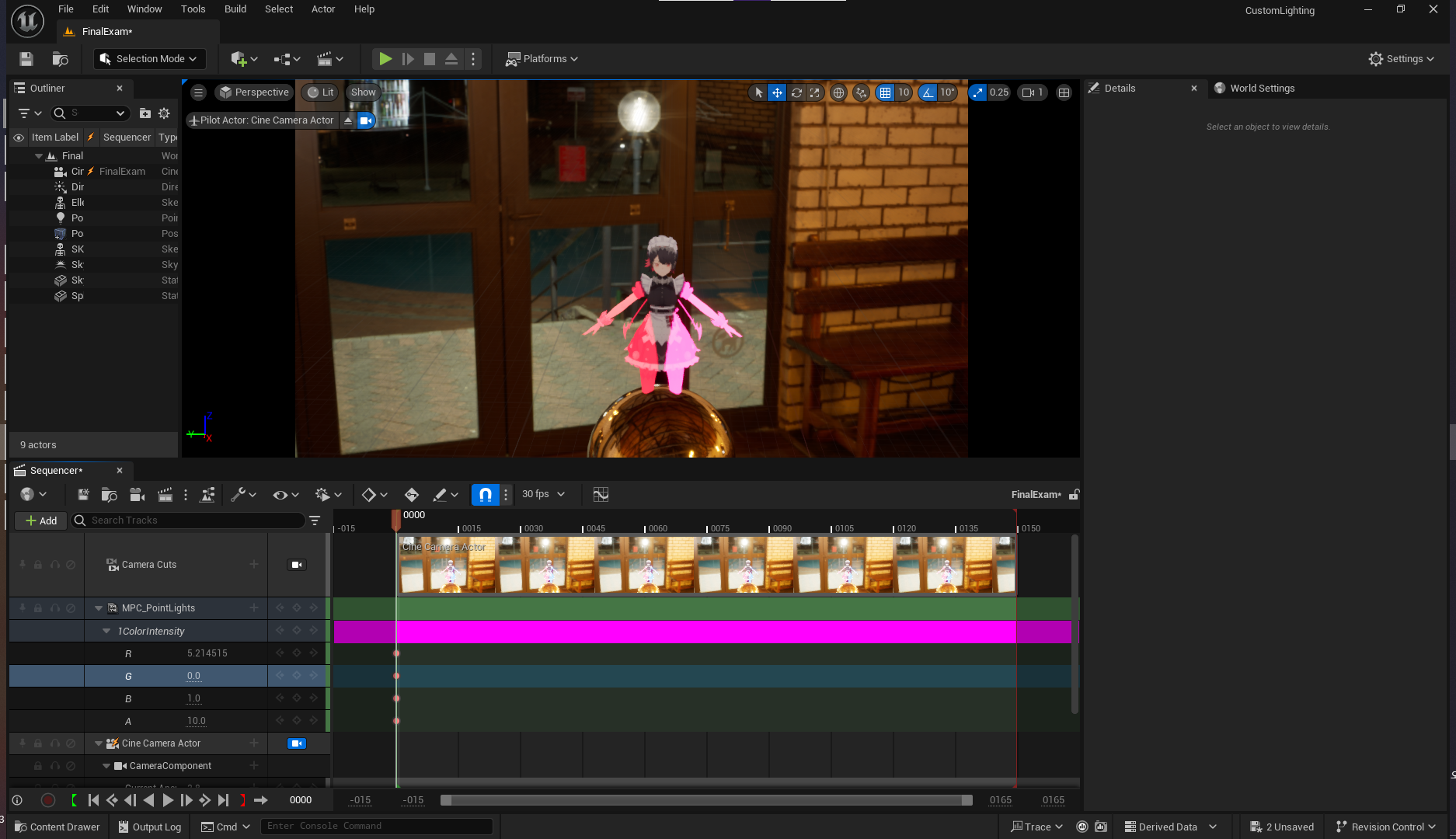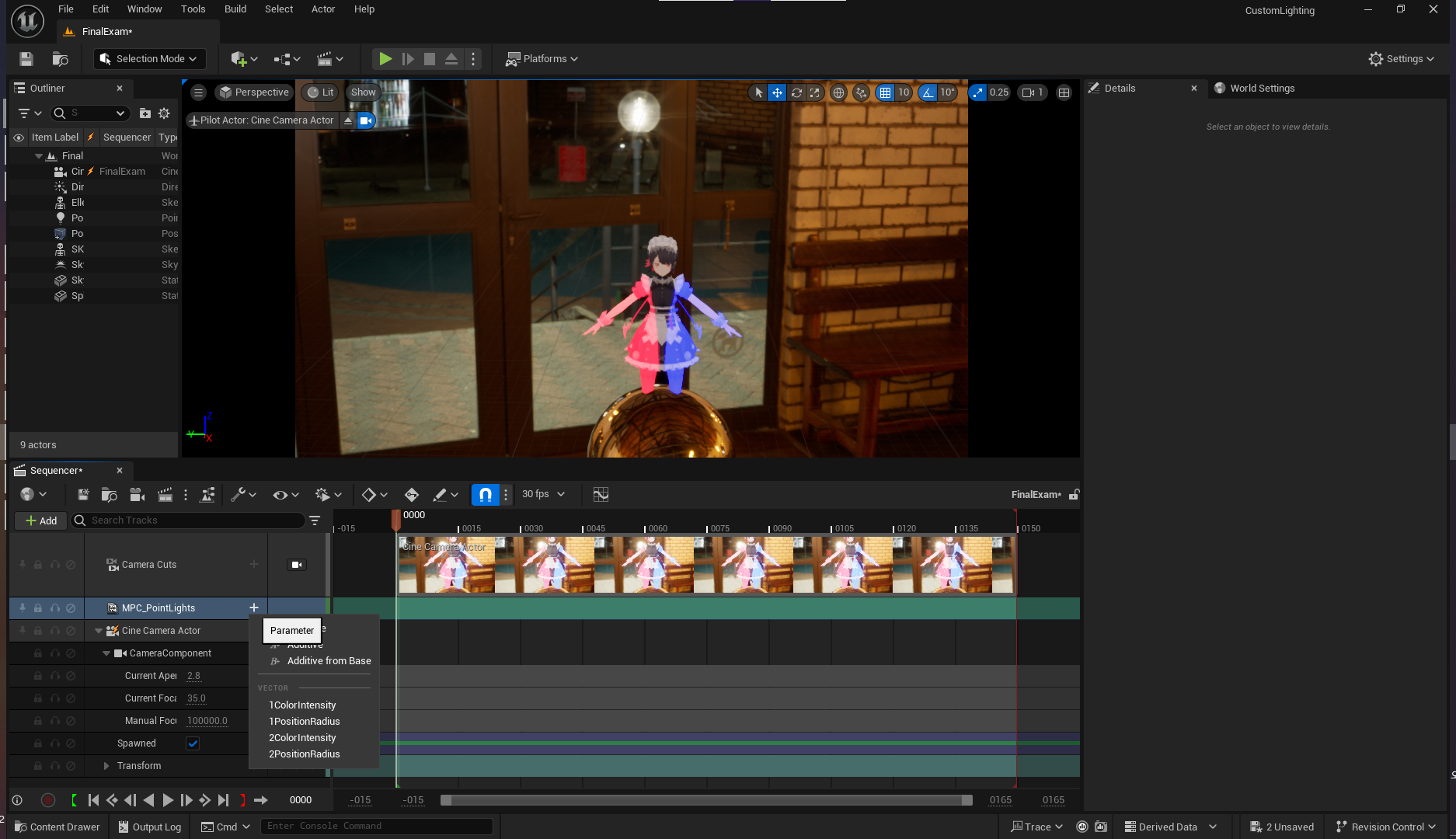 시퀀서에서 라이팅 색상과 세기를 바꿀 수 있다.