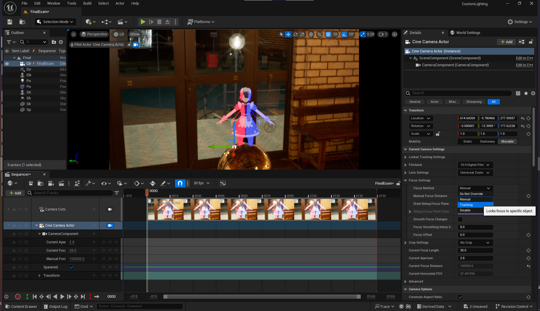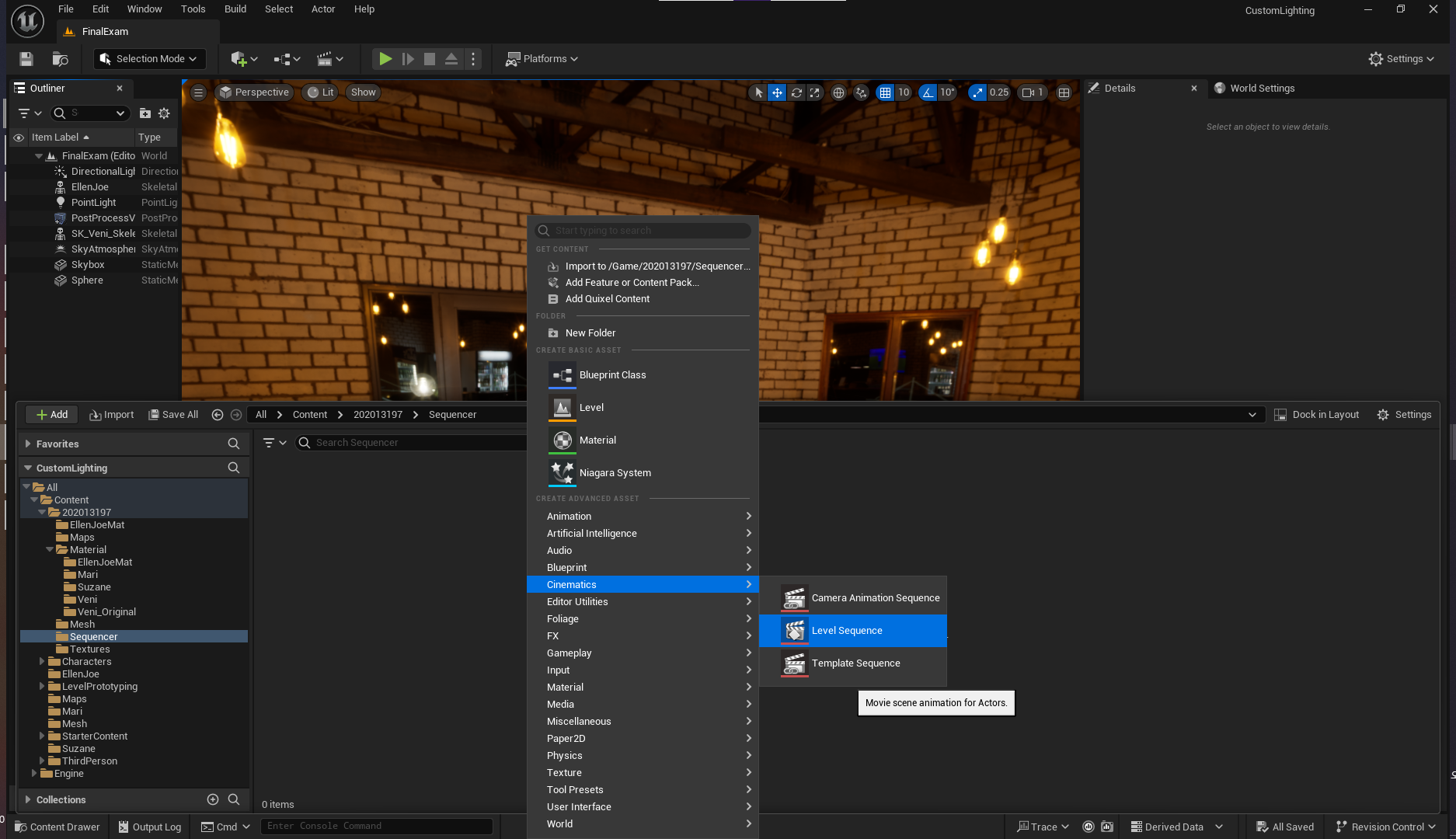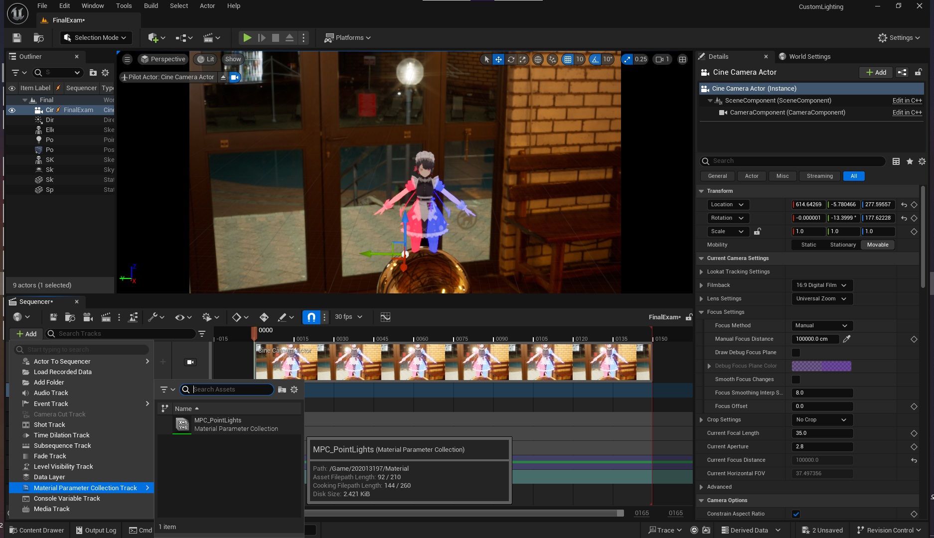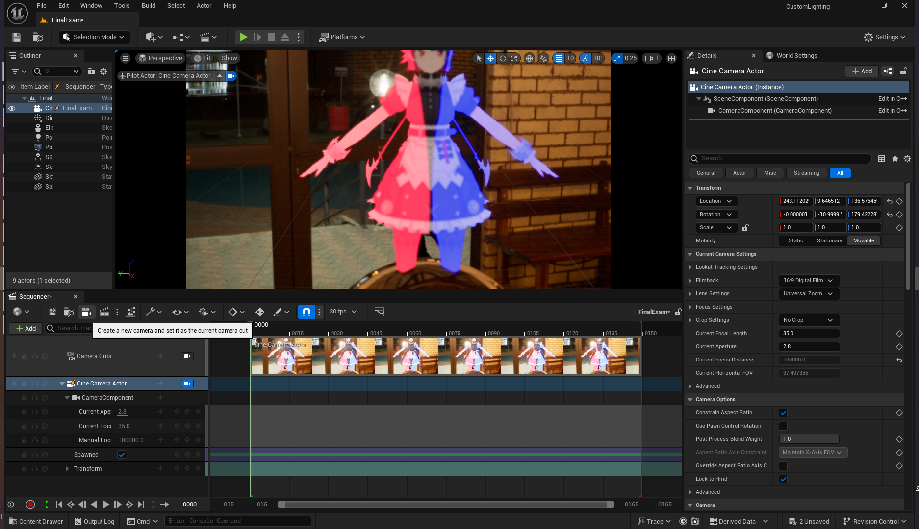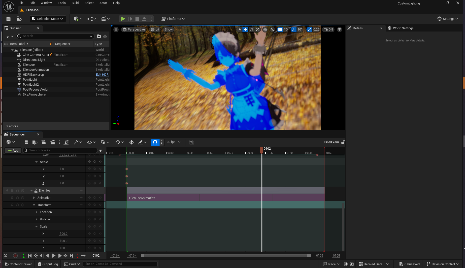 시퀀서에서 라이팅 색상과 세기를 바꿀 수 있다.
