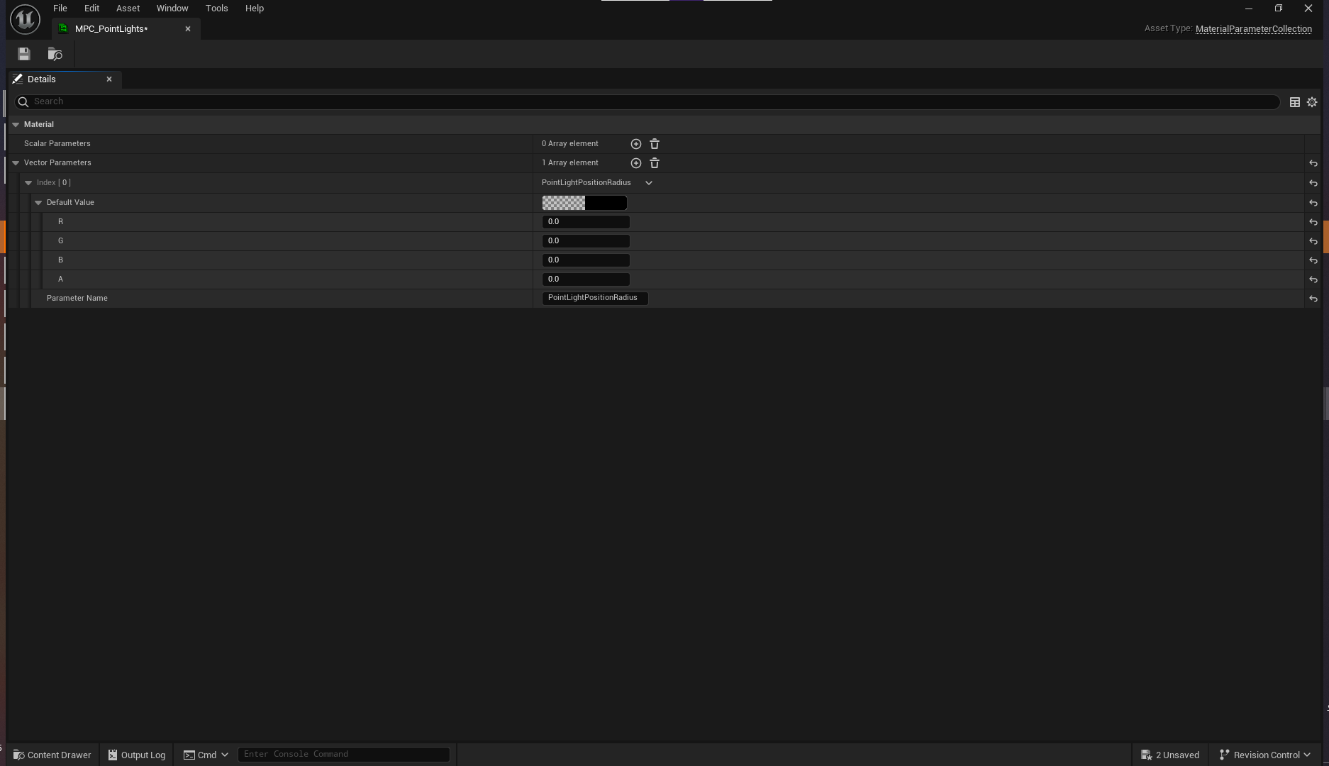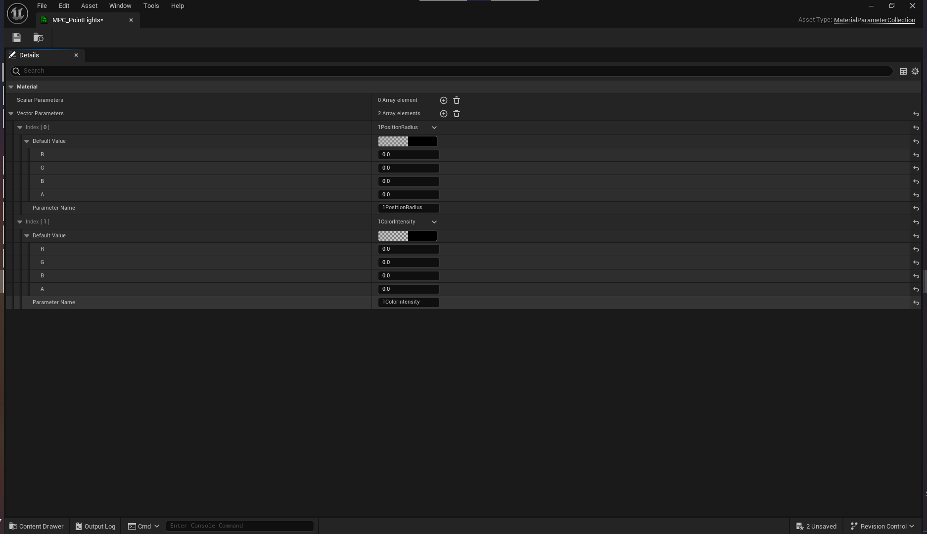 하나가 비어 아까울 경우 위치, 반경 두 가지를 하나의 Vector Parameter에 넣을 수 있다.